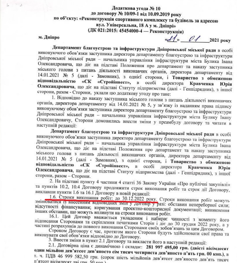 Но еще в апреле 2020-го, то есть до заявления мэра о завершении работ в ближайшее время, департамент благоустройства и инфраструктуры Днепровской горрады заключил с генподрядчиком дополнительное соглашение, которым среди прочего был продлен срок выполнения работ до конца 2021 года. То есть, когда мэр давал перед выборами обещание о сроках, скорее всего, он знал, что до выборов не успеют. А в январе текущего года срок выполнения работ продлили уже до конца 2022-го.