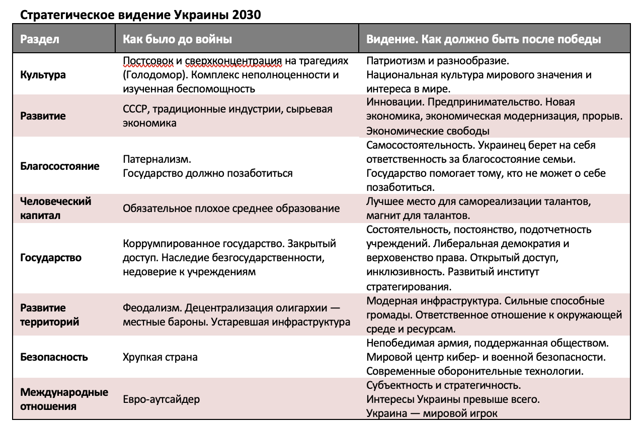 Пересоздание Украины, а именно: новые общественные договоры могут базироваться на том, что нас объединяет. Всех — и тех, кто на фронте, и тех, кто за рубежом, разных по возрасту и опыту. Потому что история (и даже опыт участия в реформах) разъединяет. А стремление к лучшему будущему объединяет.