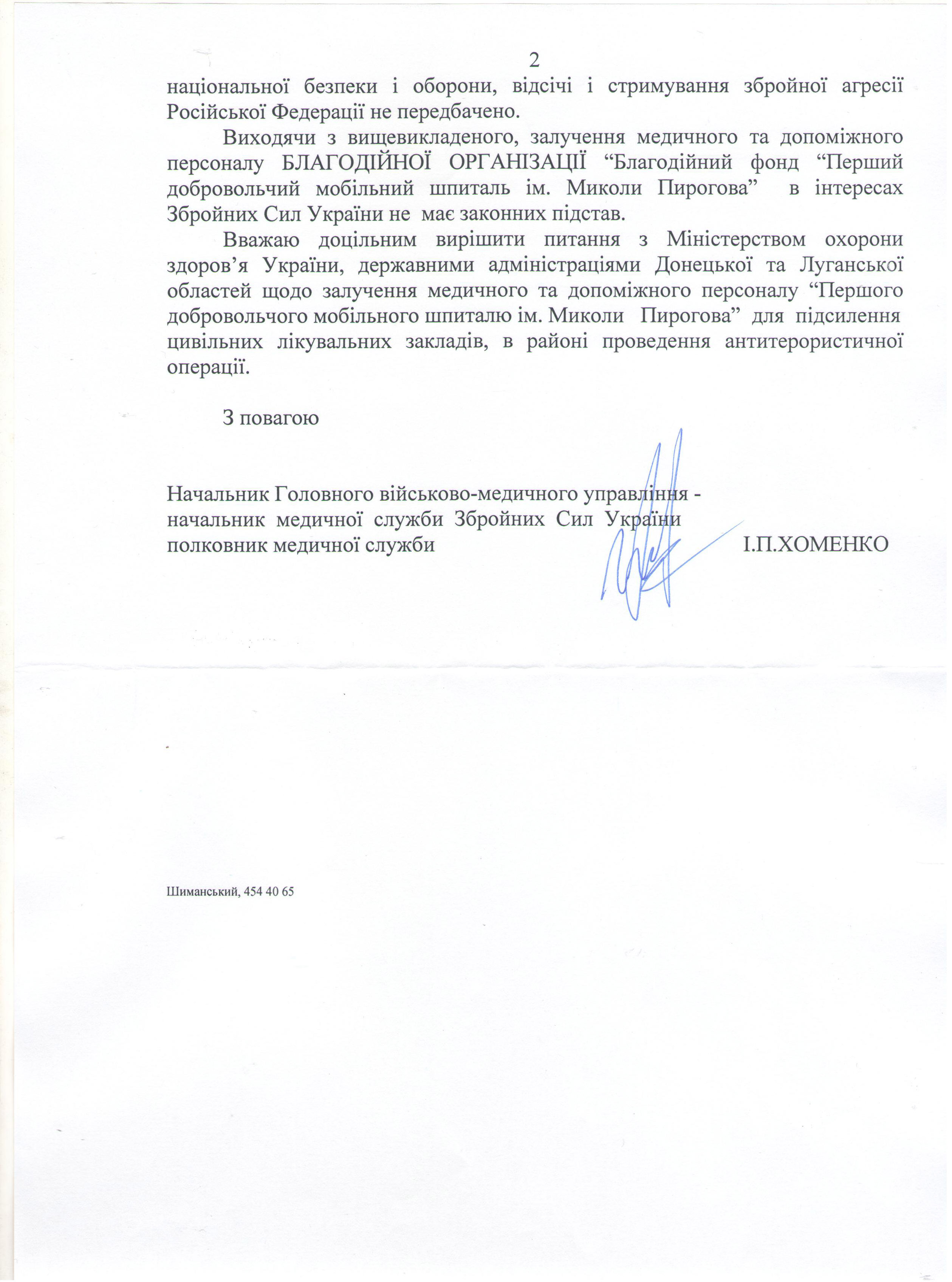 Поводом для написания этой статьи стало письмо руководителя недавно созданного Главного военно-медицинского управления (ГВМУ) Минобороны, полковника медицинской службы Игоря Хоменко в адрес Первого добровольческого мобильного госпиталя (ПДМГ) им. Николая Пирогова. В нем начальник медслужбы Вооруженных сил Украины утверждает, что потребность в привлечении медиков-добровольцев сейчас отпала, поскольку "имеющееся количество военно-лечебных учреждений, их оснащение, укомплектованность и уровень профессиональной подготовки персонала позволяют обеспечить на надлежащем уровне предоставление медпомощи и лечение участников АТО".