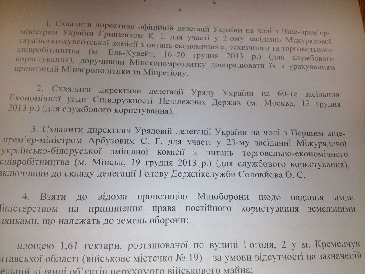 Мы не знаем обо всех планах В.Януковича на 17-е число (впрочем, как и на последующие дни). Однако в распоряжении редакции ZN.UA оказались два документа - протокол состоявшегося в минувшую среду заседания правительства, а также проект протокола шестого заседания украино-российской межгосударственной комиссии, одобренный на этом самом заседании КМУ.