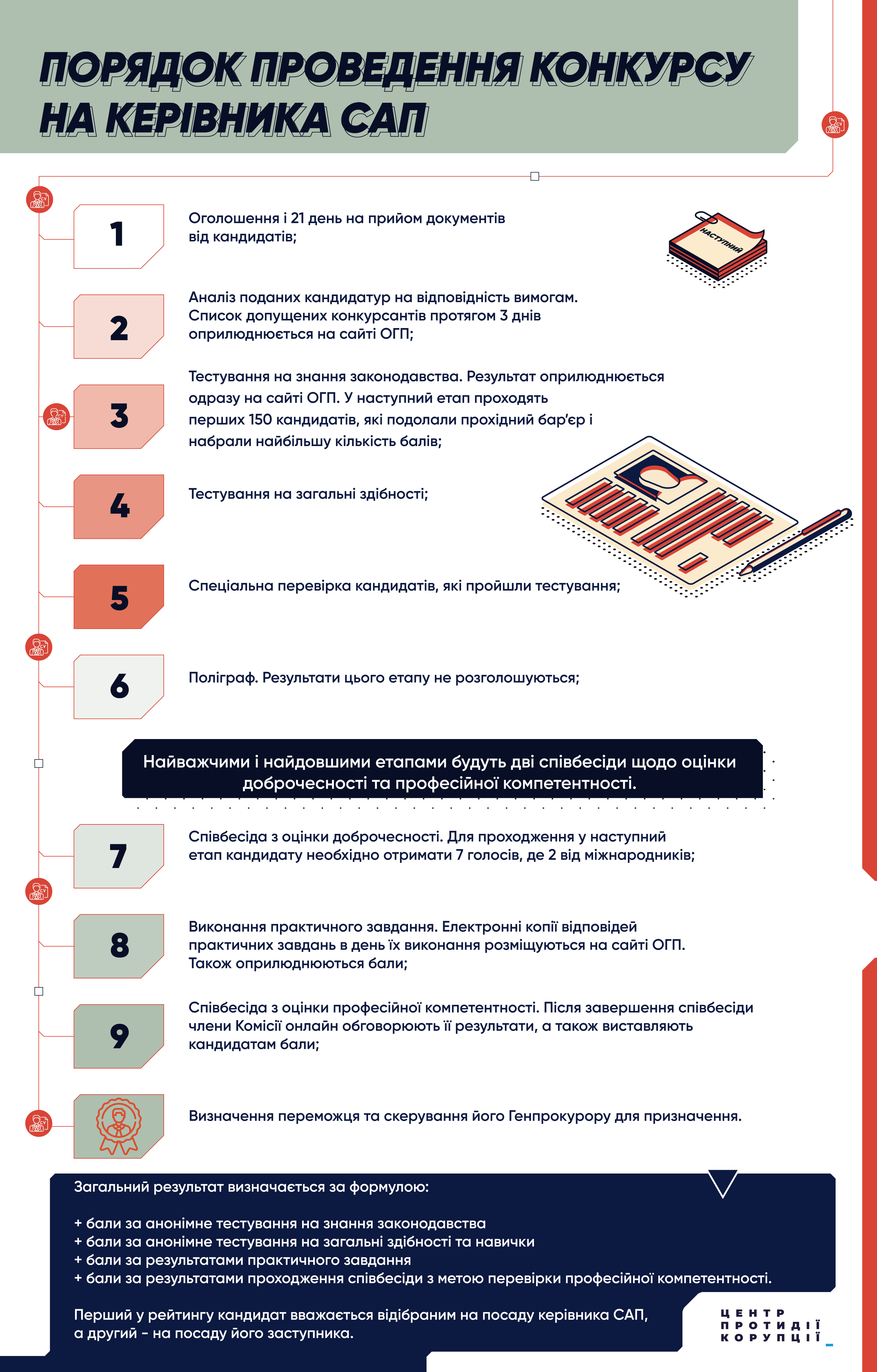 Конкурс на руководителя САП начинается с момента его объявления. На прием документов от кандидатов дается 21 день. Перечень документов уже обнародован на сайте Офиса генерального прокурора.