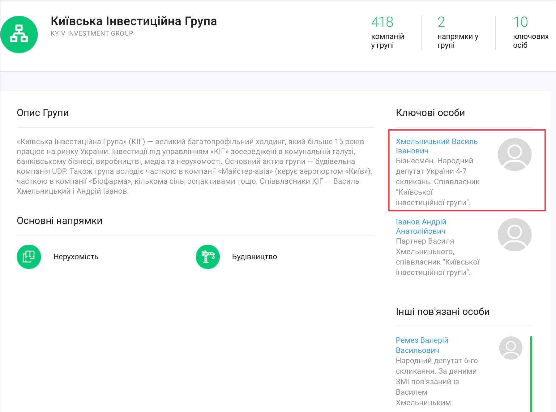 Тем временем данные из открытых реестров указывают, что компании "Глобал Инвест" и "Юнит Финанс" входят в группу компаний "ХИГ", которую контролирует олигарх Василий Хмельницкий - бывший народный депутат от Партии регионов, неоднократно становившийся фигурантом антикоррупционных расследований.