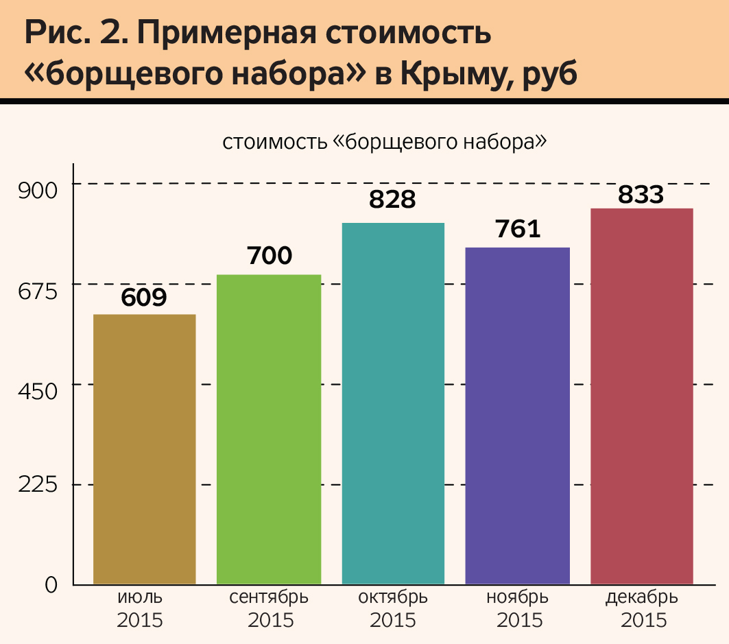 Крым сегодня - это обыкновенная российская глубинка, не имеющая сухопутной связи с материковой Россией. В энергетическом, экономическом плане и по водообеспечению зависимая от Украины территория. Голода в Крыму нет. Но объективные экономические причины и влияние гражданской блокады товарных поставок в Крым привели к системному повышению цен на товары. В том числе и на продовольствие. Это повышение сопровождается падением качества предлагаемых товаров и вымыванию привычного для потребления ассортимента.