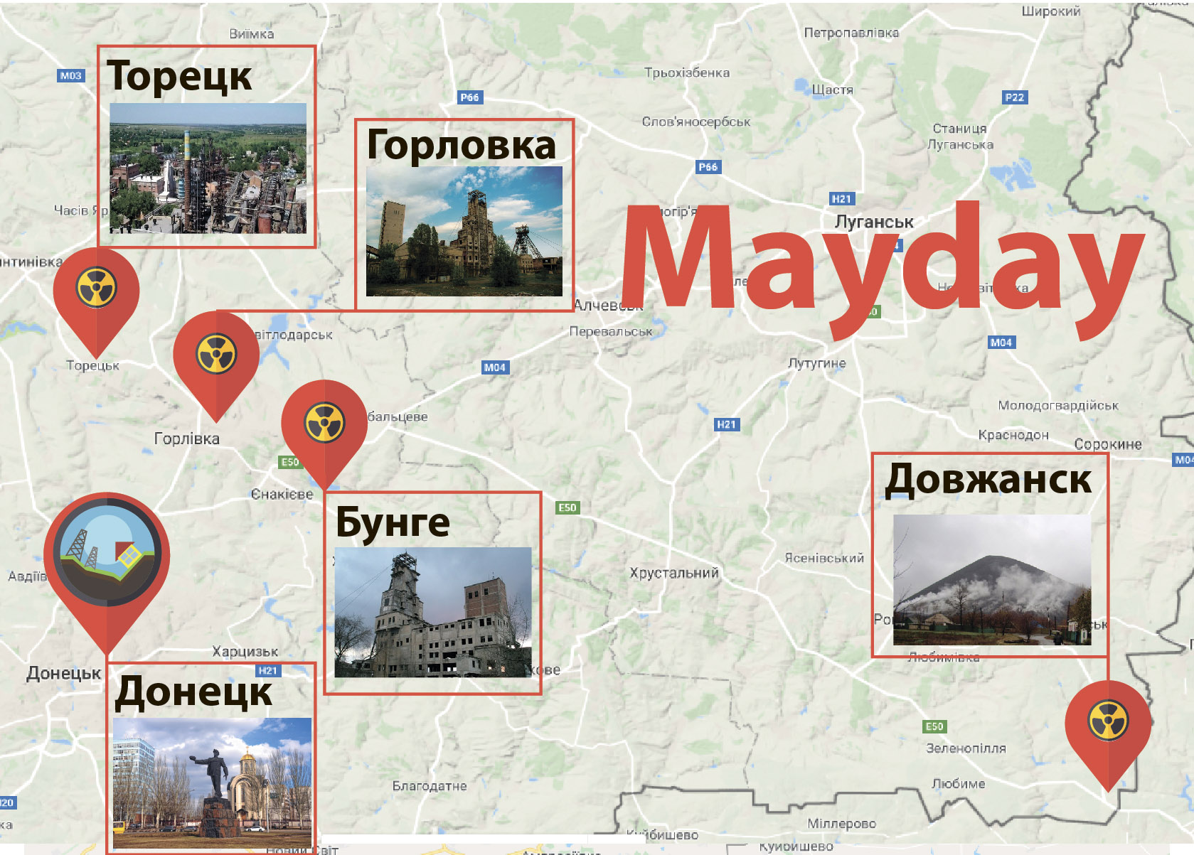Вероятнее всего, большинство из вас не знали, что в 1979 г. в шахте "Юный коммунар" (г. Бунге, Донецкая область) на глубине 900 метров был проведен экспериментальный подземный ядерный взрыв мощностью 300 тонн тротила. В результате образовалась стеклянная радиоактивная капсула, содержащая радиоактивные изотопы стронция, цезия и плутония (объект "Кливаж"). (Подробно о радиационных угрозах, усилившихся или возникших в результате оккупации по состоянию на апрель 2018-го ("Мутации опасности, или Радиационные угрозы оккупированных территорий" ZN.UA №15 от 21.04.2018). В случае ее разрушения произойдет чрезвычайно сильное радиоактивное загрязнение подземных вод, которое распространится на огромную территорию. Как сообщили наблюдатели мониторинговой миссии ОБСЕ, в апреле 2018 г. оккупанты остановили насосы, откачивавшие из "Юнкома" воду.