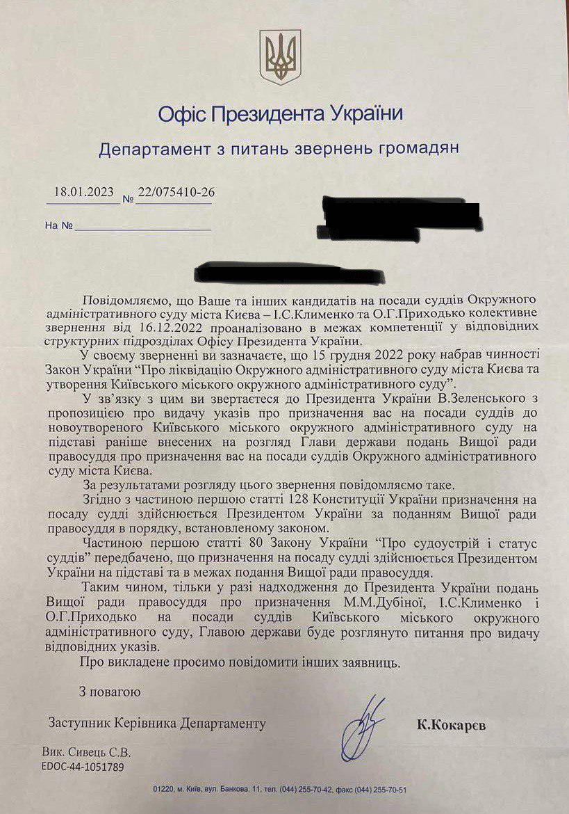 Своеобразным финальным занавесом в этой истории должен был бы стать закон о ликвидации Окружного административного суда города Киева от 13.12.2022. В Переходных и заключительных положениях законодатель попытался предотвратить негативные последствия ликвидации суда для участников судебных дел, аппарата суда и судей. Но почему-то ни словом не вспомнил неназначенных судей. Они были наказаны без вины.