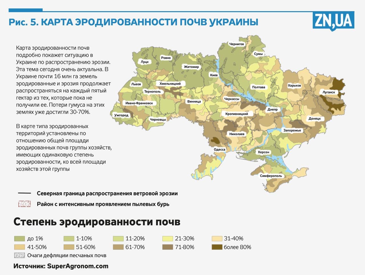 Вести сельское хозяйство в регионе непросто: плодородие грунтов в областях ниже, чем в среднем по Украине. Засушливый климат и, соответственно, малое количество осадков (особенно это ощущается в Донецкой области) снижают эффективность сельского хозяйства. Устаревшие оросительные системы и высокая эродированность грунтов лишь усугубляют эту проблему. На обе области работает всего одна грунтовая лаборатория, даже для качественной оценки земель этого явно недостаточно (см. рис. 5).