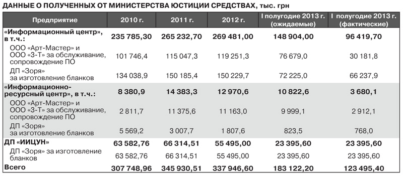 ZN.UA удалось получить от следственных органов аудиторский отчет Минюста. Мы получили эксклюзивные данные относительно средств, которые за последние 3 года подгребали предприятия, обслуживающие реестры. За все это Минюсту, который содержится из бюджета государства, граждане дополнительно платят из своих карманов.