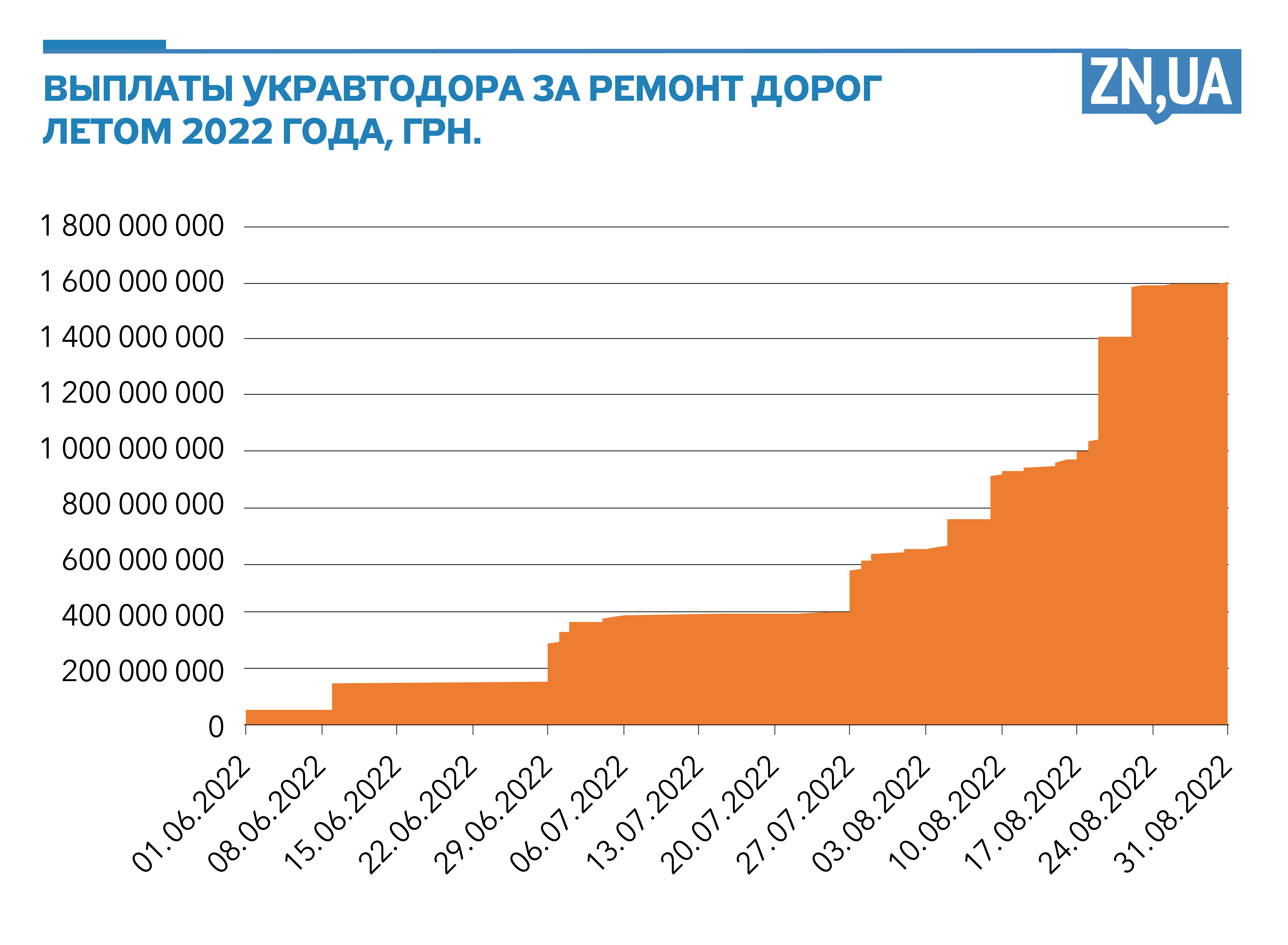 Денежный кран для Укравтодора немного открутили. За первую половину августа его подрядчики получили около 700 млн грн. Далеко не довоенные времена, когда такие суммы выплачивали иногда за один день «Большого строительства», но, тем не менее, вдвое больше, чем Укравтодор мог платить своим подрядчикам в июне и июле (см. рис.).