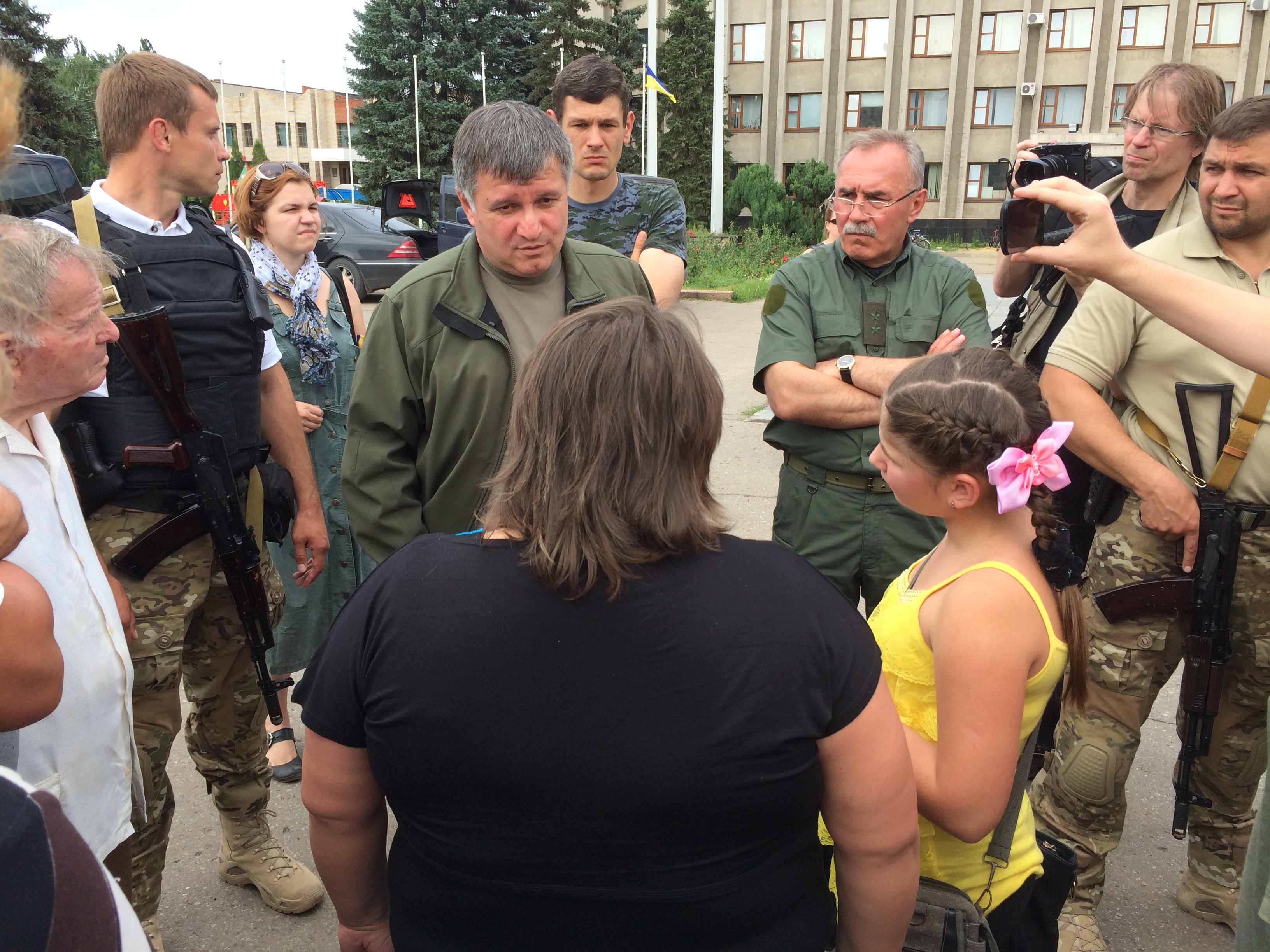 Небольшая толпа обступила министра МВД Арсена Авакова. Руководителя милицейского ведомства засыпают вопросами: что же будет дальше.