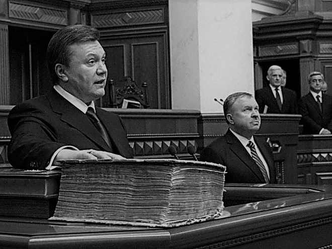 В самых криминализованных группах схема в целом выглядела так: «асфальт» — «кресло директора фирмы» — место в сессионном зале или властном кабинете. Но центральный вопрос любой революции — вопрос власти. И в 2010 году криминалитет (донецкий криминальный клан, получивший при Кучме в кормление Донбасс) провел во власть своего ставленника Виктора Януковича. Уже успевшего получить опыт государственной службы на посту губернатора Донецкой области и премьер-министра при Кучме.