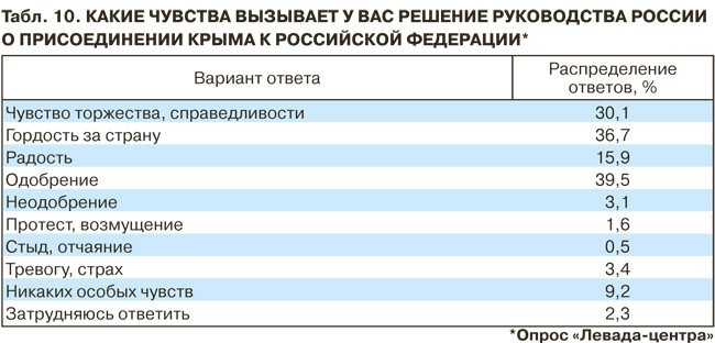 - "Левада-центр" задавал россиянам вопрос: "Как вы думаете, какие чувства вызывает присоединение к России Крыма у украинцев?" И в этом вопросе наблюдалась существенная динамика: все больше россиян стало осознавать, что, вероятно, украинцам такое положение дел не очень нравится…