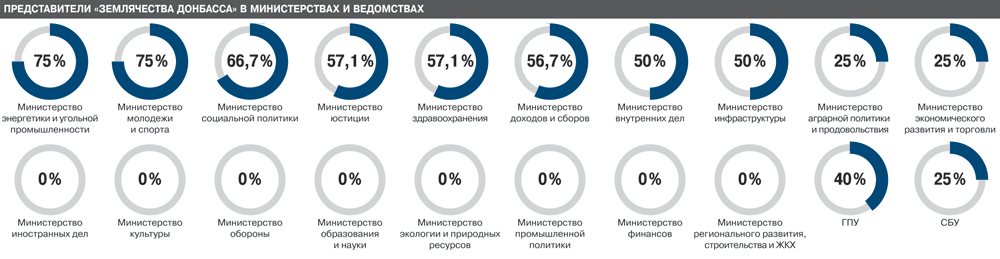 Полученные данные послужили яркой иллюстрацией того, какие рычаги и инструменты президент считает в управлении государством ключевыми. Например, Верховный суд, имеющий сейчас статус "английской королевы", не имеет в рядах своего руководства ни одного представителя Донетчины. То ли дело Конституционный суд, где "македонцев" - восемь из восемнадцати, или Высший хозсуд, где из "донецких степей" происходит глава, один из трех его заместителей и руководитель аппарата. В министерствах концентрация донбасского землячества прямо соответствует близости министерства к силовым рычагам или крупным финансовым потокам. МВД и Миндоходов - вне конкуренции, причем это касается и руководства региональных подразделений названных министерств. А сравнение "донбассизации" Гепрокуратуры и СБУ наглядно иллюстрирует, насколько широко разрослись полномочия первого органа и как низведены возможности второго.