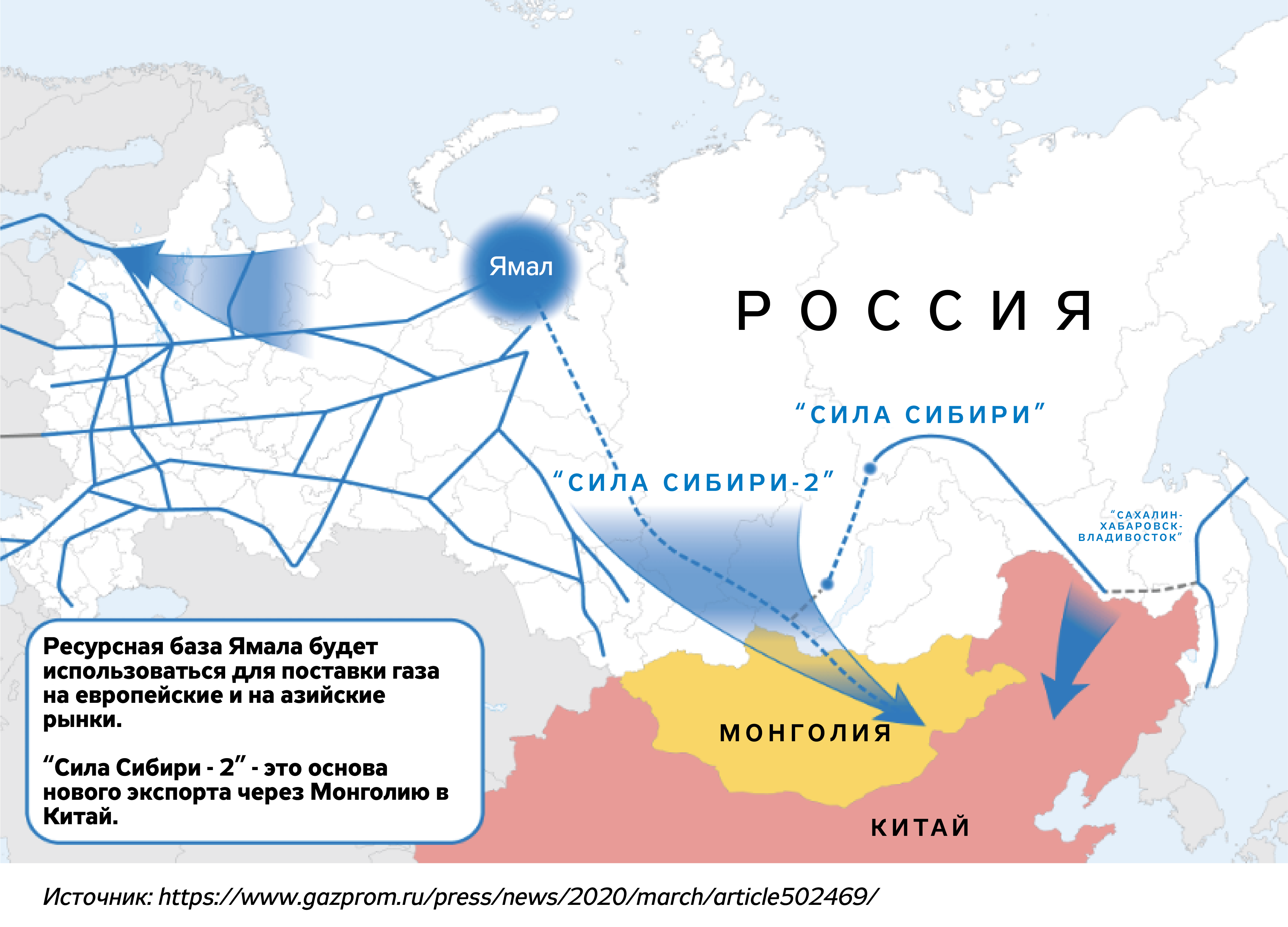Именно новый масштабный проект «Газпрома» «Сила Сибири-2» — «Союз— Восток» (через Монголию) и должен обеспечить трансконтинентальную интеграцию газотранспортных систем. Это позволит России маневрировать и манипулировать экспортом газа как в Европу, так и в Китай, используя при этом еще и маневровый потенциал СПГ арктических проектов.