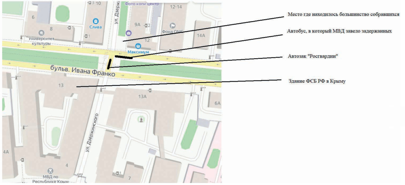 Крымские правозащитники обращают внимание на тот факт, что когда Стеценко требовал от присутствующих разойтись, автобус для доставки задержанных в «участок полиции» уже был припаркован.