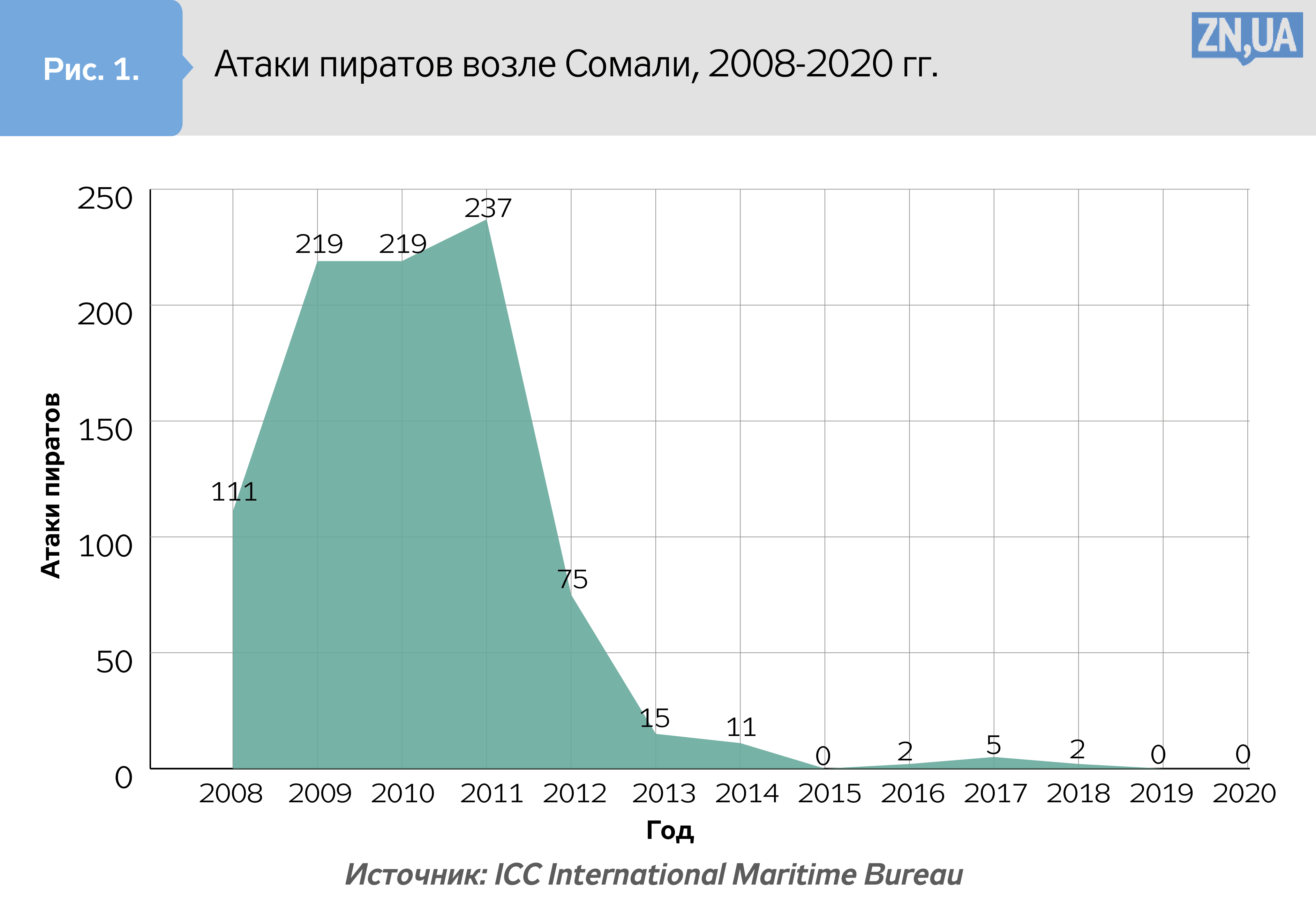 Но помогло ли все это преодолеть пиратство возле сомалийского побережья? Как демонстрируют данные ICC International Maritime Bureau — помогло. Если в пиковом 2011 году, уже после начала военных операций возле Сомали, пираты осуществили 237 атак, то в 2012-м — 75, а в 2015-м — ноль. Последние атаки там были зафиксированы в 2018-м. Этот результат стал возможным благодаря объединению мощной военной операции возле залива и рационализму самих судовладельцев. Как свидетельствует карта маршрутов морских перевозок за последние несколько лет, корабли стараются обходить сомалийское побережье.