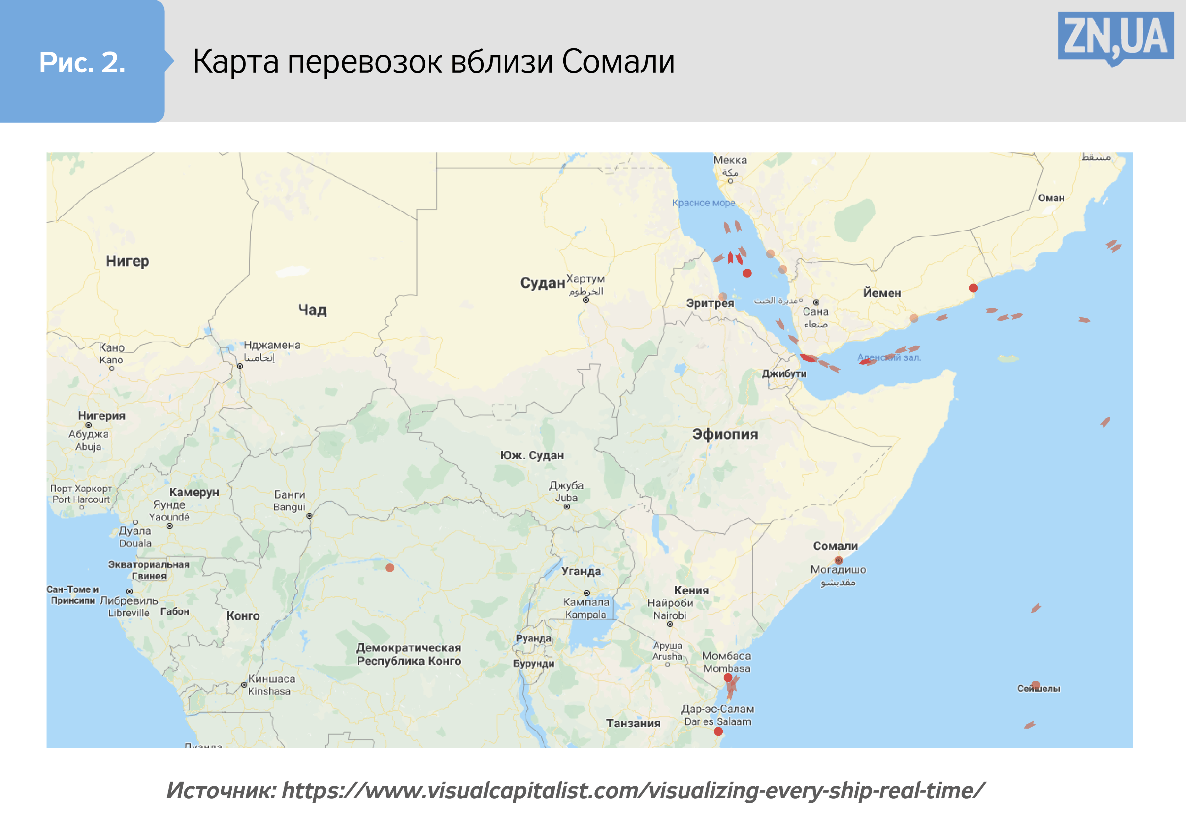В-третьих, Сомали приближена к одному из центральных морских транспортных маршрутов. Неподалеку от сомалийского побережья размещены так называемые ворота слез, или пролив Баб-эль-Мандеб, отделяющий Красное море от Индийского океана. Еще в 2016 году посчитали, что через эти ворота ежедневно проплывают 4,8 млн баррелей нефти и нефтепродуктов, из которых 2,8 млн направляются на север, к Суэцкому каналу и далее в Европу, а другие 2 млн баррелей — на юг, через Аденский залив в Азию. Даже с нынешними низкими ценами на нефть, это свыше 190 млн долларов в день, огромные деньги для тех, для кого и 100 долларов — настоящее богатство.