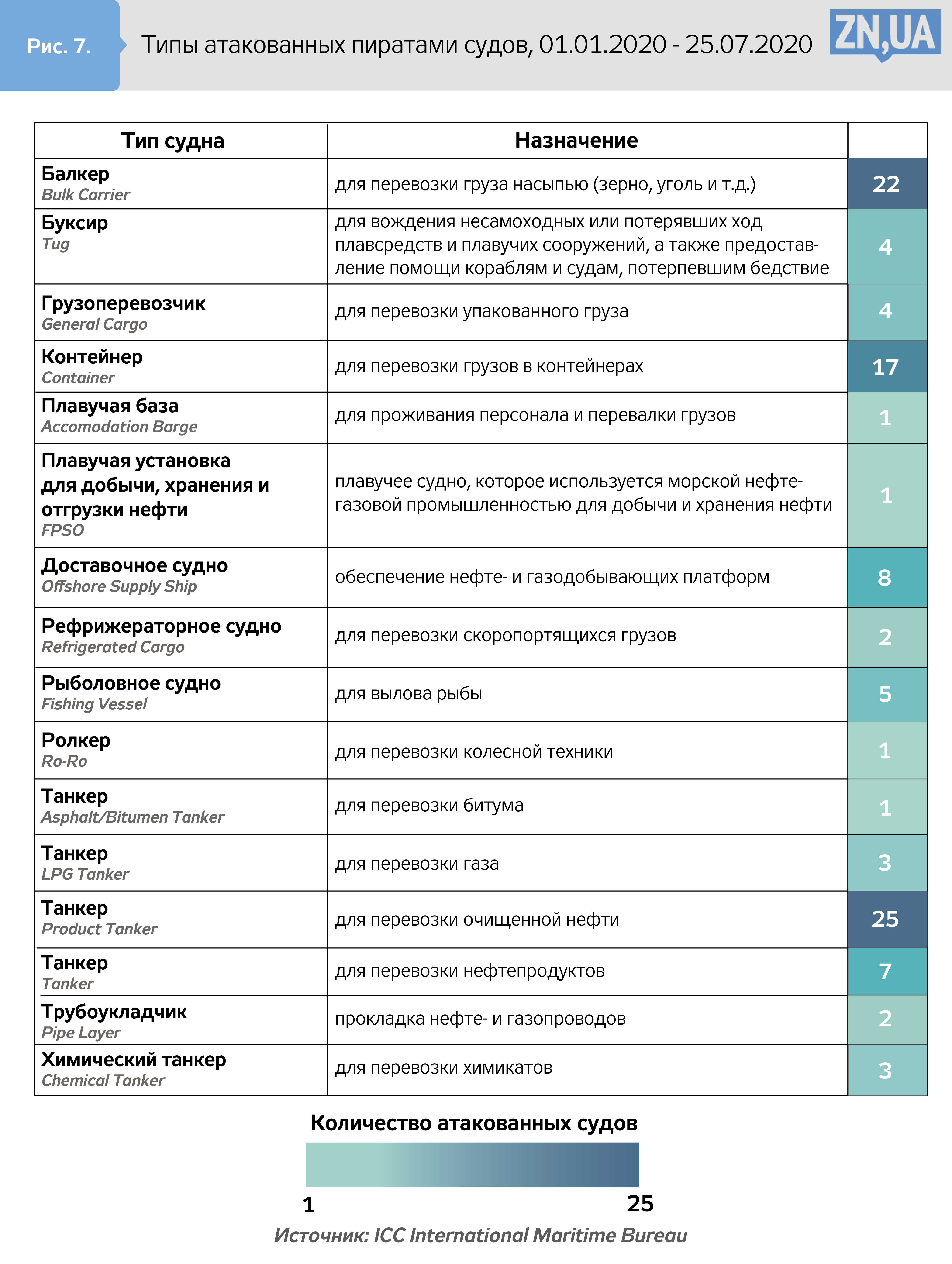 18 июля в Гвинейском заливе возле нигерийского побережья группа местных пиратов атаковала и захватила коммерческую лодку. В плену оказались 13 человек, шестеро из которых — граждане Украины. С начала года это нападение стало 36-м в этом заливе и 16-м именно возле Нигерии.