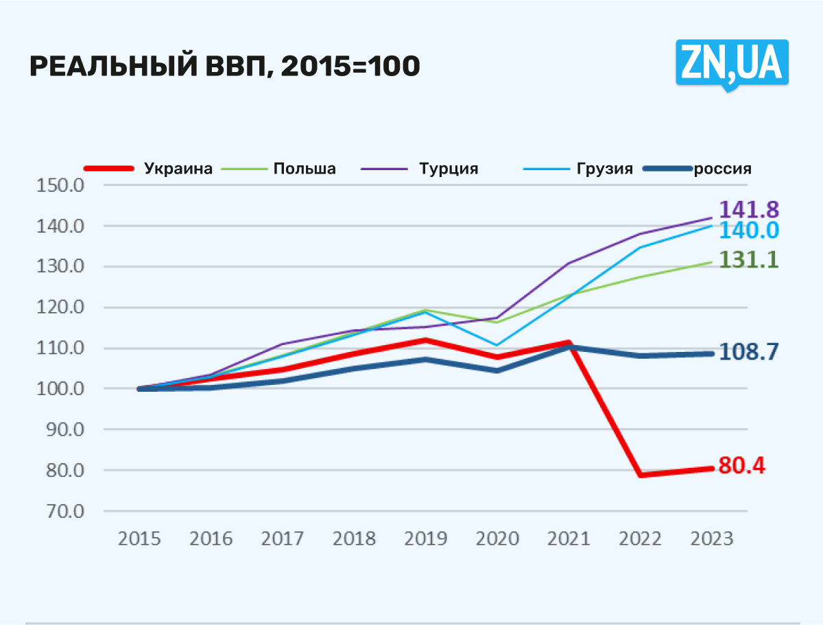 На самом деле после 2015 года темпы роста реального ВВП Украины не превышали 4% в год.