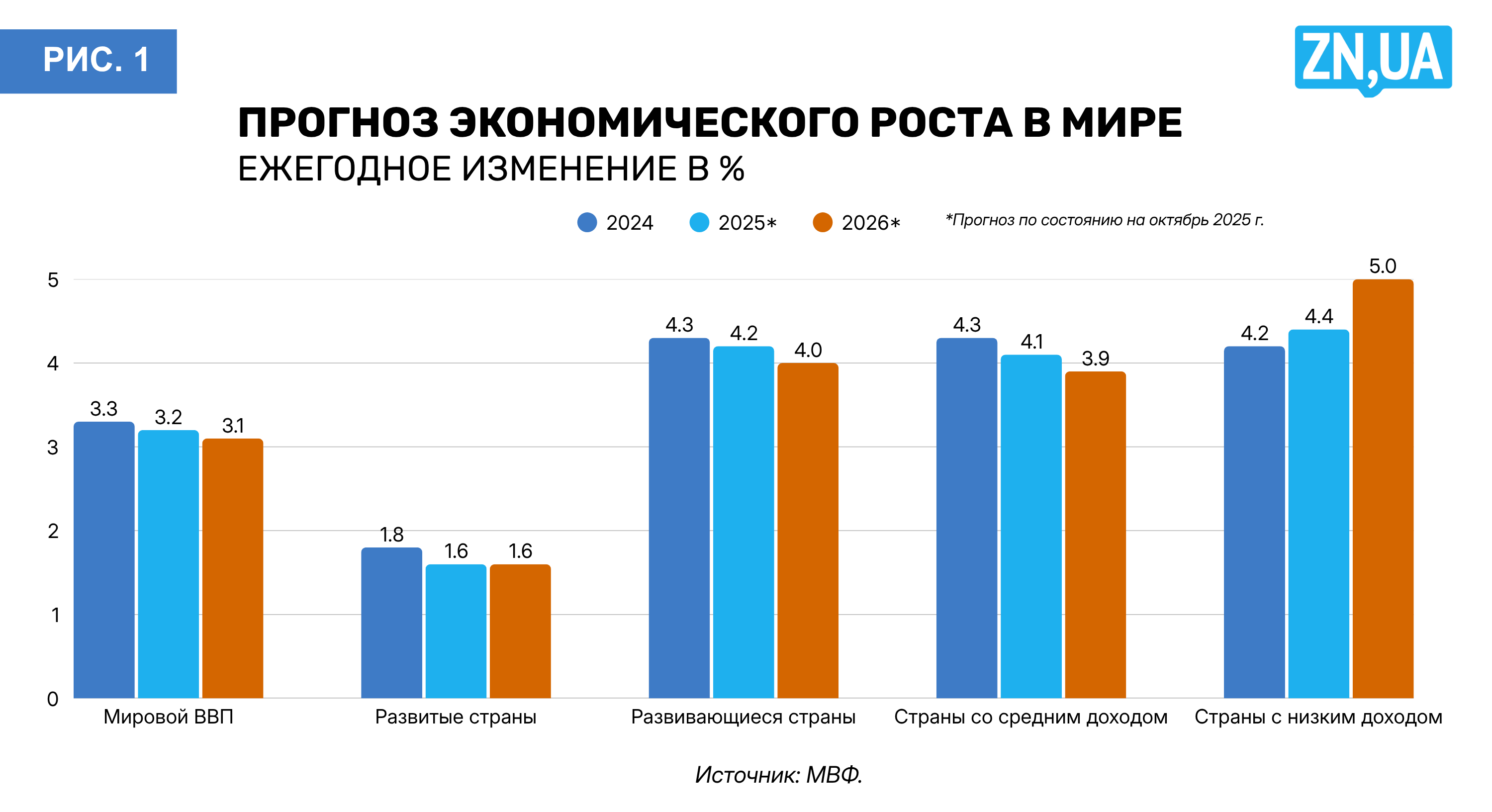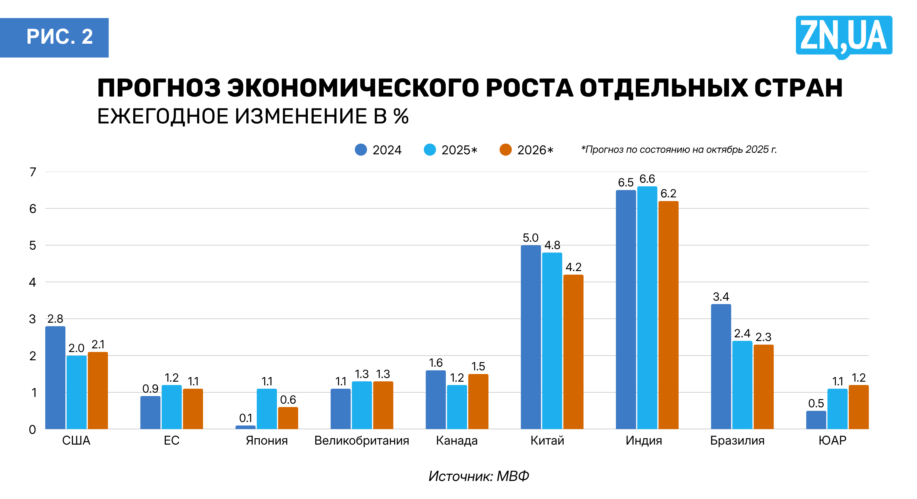 В обновленном документе Фонд отметил, что глобальный рост продолжил торможение, но не такими быстрыми темпами, как он прогнозировал полгода назад (см. рис. 1–2). Причиной этого пересмотра стало то, что ряд высоких тарифов, которые были объявлены США и в ответ другими странами в начале года, были потом снижены или вообще отменены благодаря последующим соглашениям и договоренностям. Вместе с этим общая экономическая среда остается турбулентной, а неопределенности и риски — высокими. Инфляция хотя тоже притормаживает, но остается значительно выше целевых показателей во многих странах.