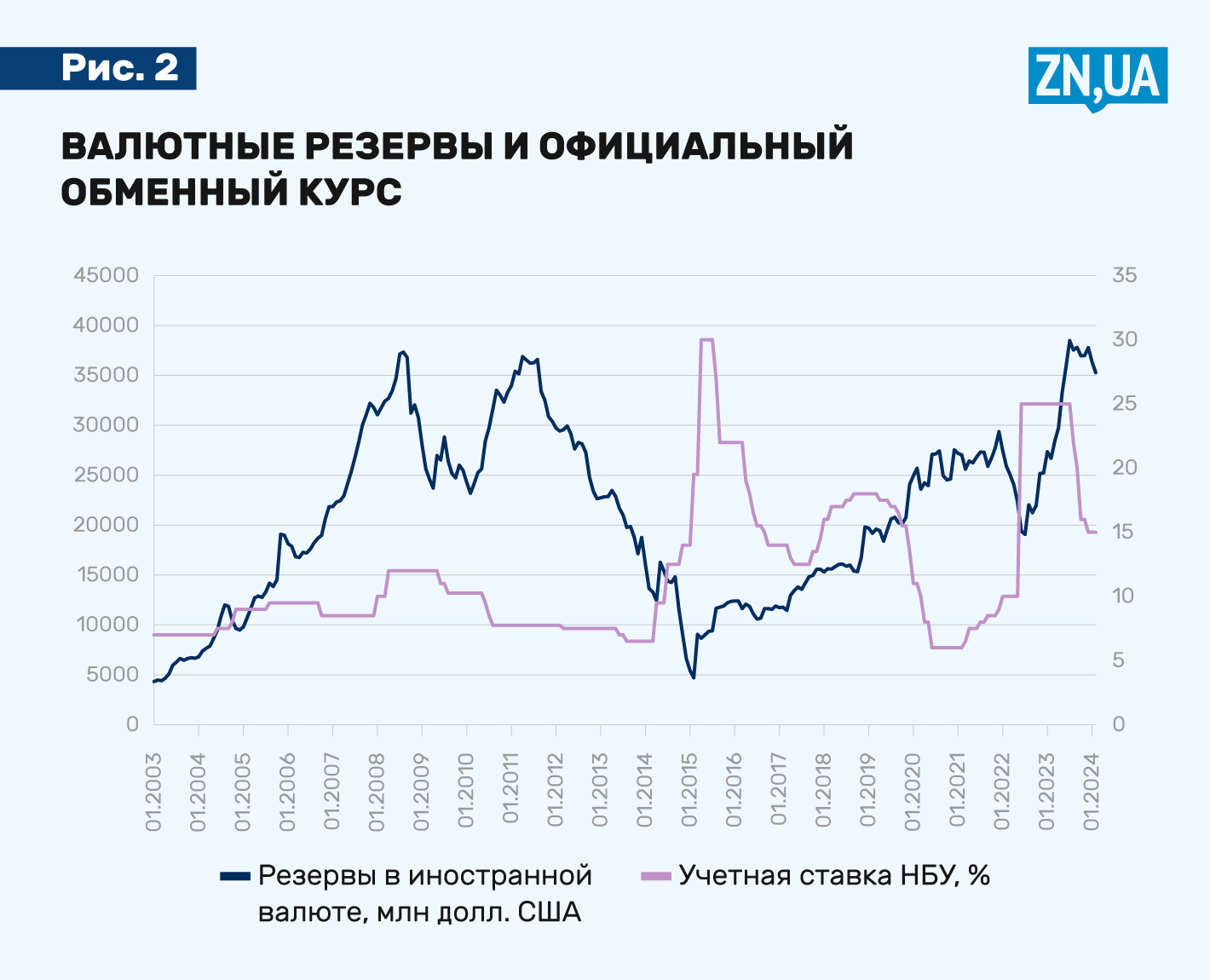 Во время военного положения также возник риск заиграться с огнем. Валютные резервы начали сокращаться в первой половине 2022 года на фоне фиксации курса. Чтобы не повторить предыдущие кризисные события, НБУ в июне 2022-го повысил учетную ставку — сразу с 10 до 25%. Это в комплексе с другими мерами помогло предотвратить валютный кризис и существенно замедлить темпы роста цен. В конце концов Нацбанк в 2023 году смог вернуться к снижению учетной ставки, но осторожно, чтобы не сгенерировать новые риски.