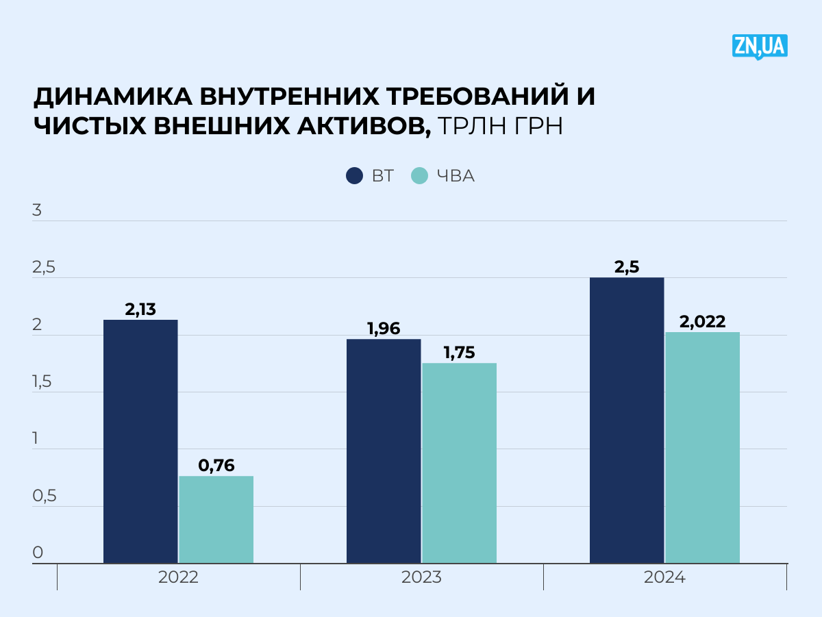 Незначительное ослабление этого показателя в 2024-м (до 80%) свидетельствует о частичном смягчении монетарной политики НБУ (уменьшении учетной ставки с 25 до 13%). Вместе с тем немного затормозился поток внешней помощи (уменьшение показателя ЧВА).