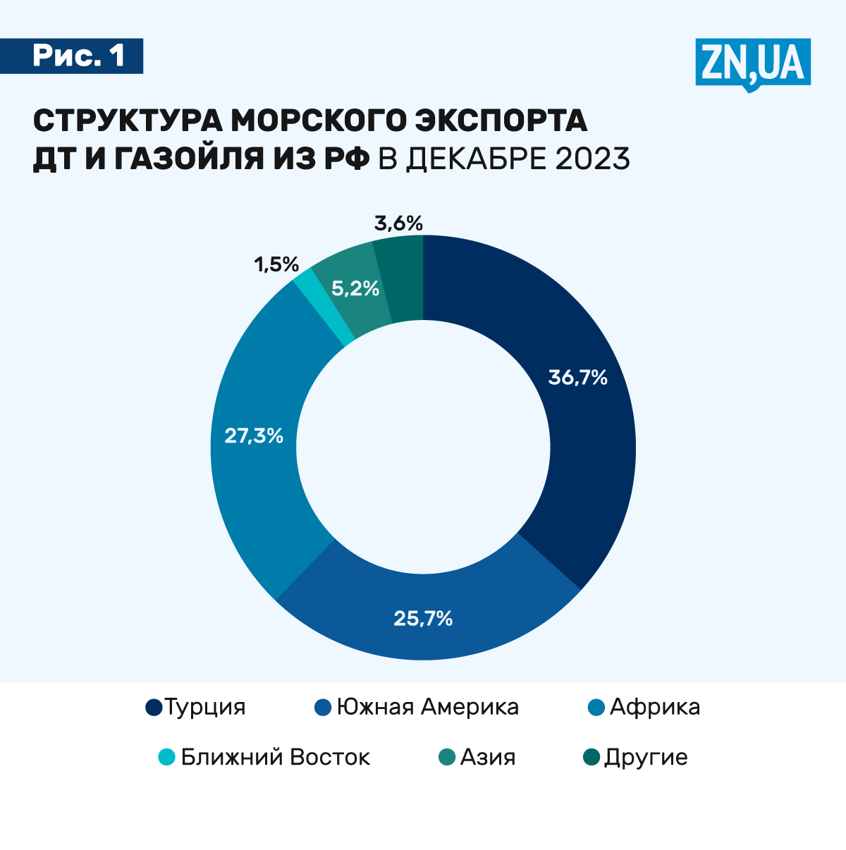 Аналогично действовала и Турция, ставшая самым большим приютом для российских нефтепродуктов. В течение последнего полугода в турецкие порты поступает в среднем 1,5 млн тонн российского ДТ и газойлов в месяц. Это дало возможность Турции увеличить ежемесячные продажи дистиллятов в Европу с 200 до 400 тыс. тонн.