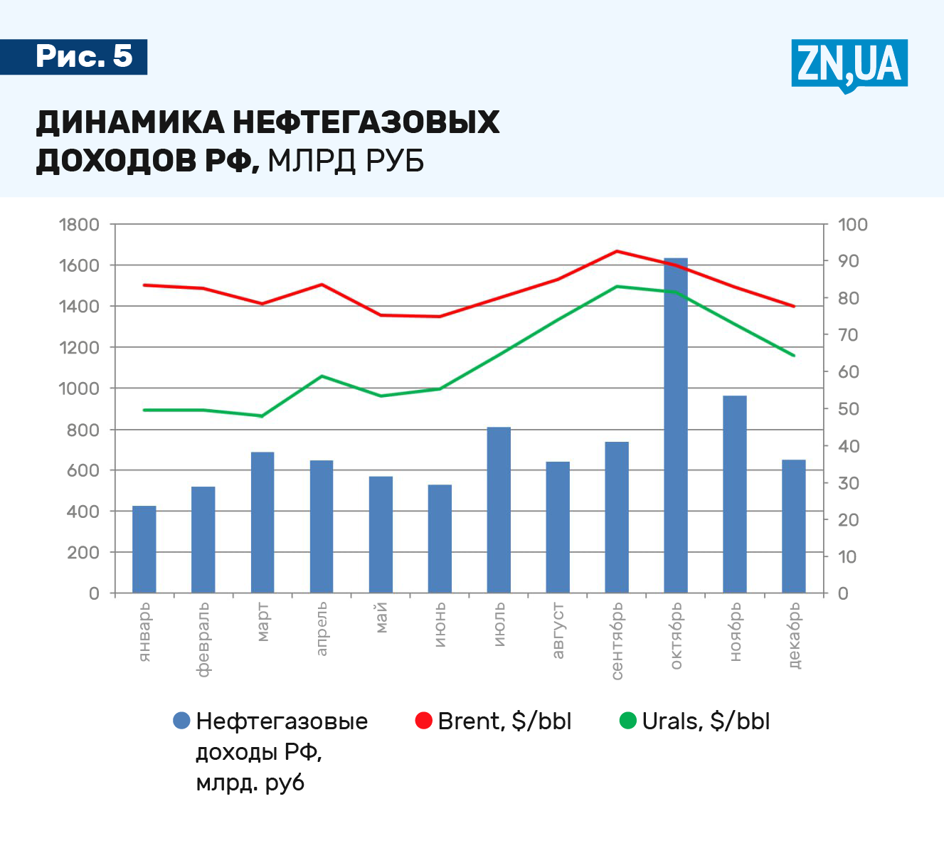 Осенью это наконец понял и Запад. 12 октября США объявили об усилении мер против незаконного флота. Также начали проводить более тщательный финансовый мониторинг банковских учреждений Индии и ОАЭ относительно соблюдения условий санкций. Введенные меры были эффективными — размер скидки Urals к цене Brent вырос с 7 долл./баррель в октябре до 13 долл./баррель в декабре (см. рис.5).