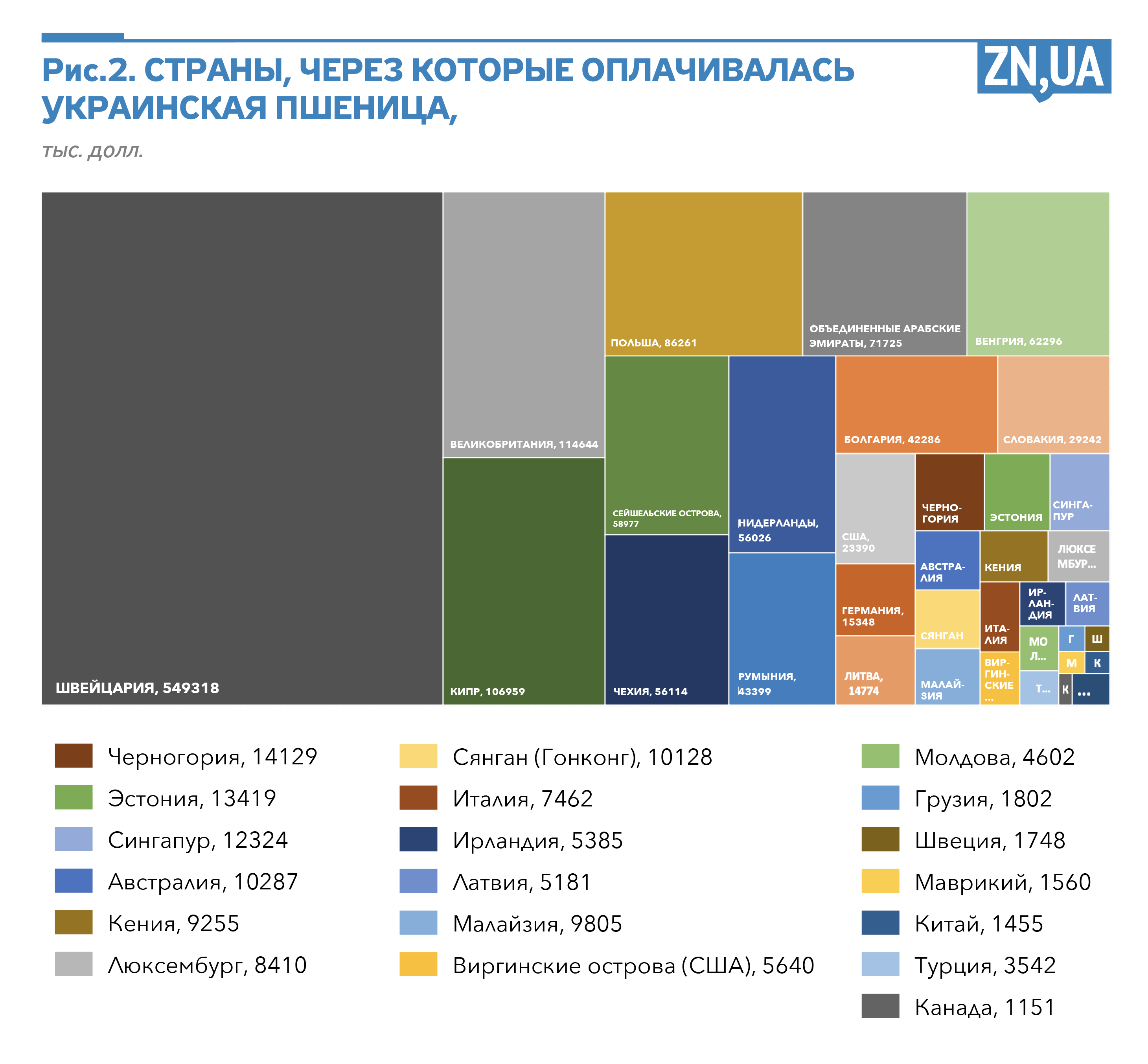 А на рис. 2 — так называемые торгующие страны, то есть те, которые получили деньги за поставки нашей пшеницы в этот же период: Швейцария, Великобритания, Кипр, Польша, ОАЭ, Венгрия, Сейшельские Острова.