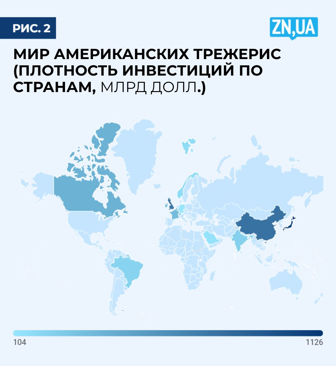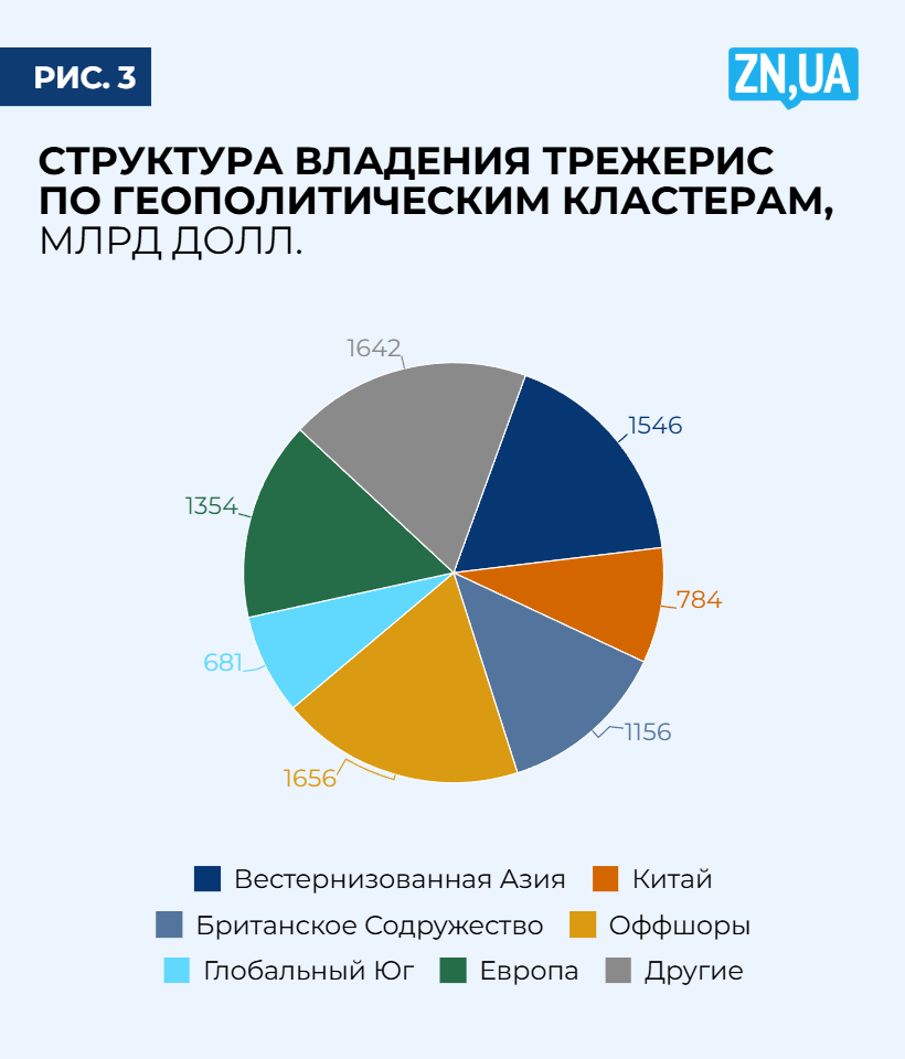 Из общей суммы трежерис в 8,8 трлн долл. союзники США (Вестернизированная Азия, ядро Британского Содружества и Европа) вложили в них более 4 трлн долл., или 46%.