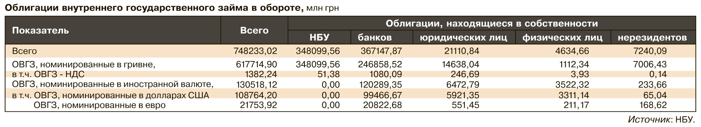 И если нерезидентов в первую очередь интересуют облигации, номинированные в гривне, которые позволяют им заработать еще больше, скупая бумаги в период после девальвации и продавая, когда гривня укрепляется, то украинцы однозначно предпочитают валютные ОВГЗ (см. табл.).