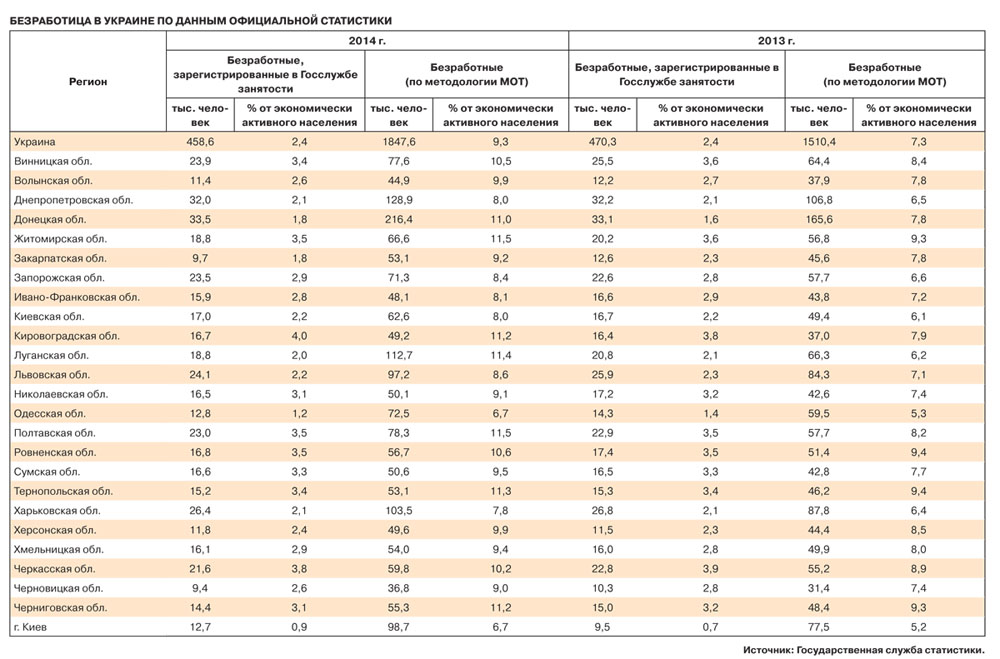Действительно, по последним статистическим данным, количество безработных (по методологии МОТ) в Донецкой и Луганской областях составило 11 и 11,4% от всего экономически активного населения, соответственно. Но в других регионах ситуация аналогичная: те же 11% безработицы зафиксированы в Житомирской, Кировоградской, Полтавской, Тернопольской и Черниговской областях. Свыше 10% безработных в Винницкой, Ровненской, Херсонской и Черкасской. Еще год назад ни в одной из областей процент безработных не выражался двузначным числом.