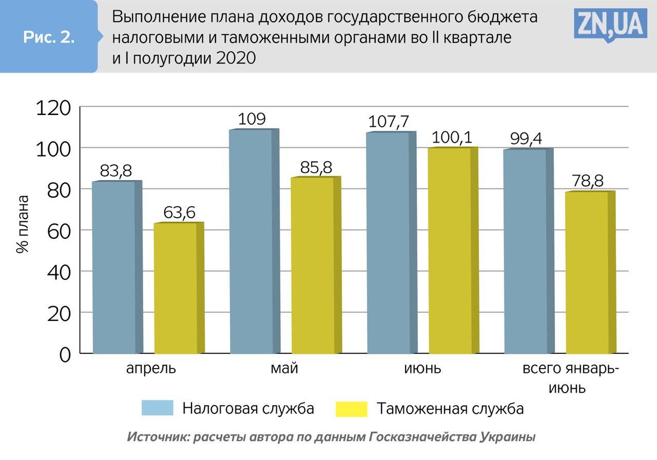 Показатели работы таможенных органов были менее оптимистичными, но ситуация со сбором платежей, которые администрирует таможенная служба, в июне существенно улучшилась. В этом месяце Государственная таможенная служба выполнила месячный план поступлений в бюджет на 100,1%. При этом средний показатель выполнения плана в январе—апреле составлял 73,3%, а в мае 2020 года — 85,8%.