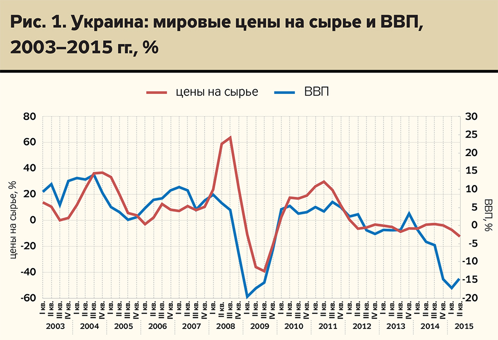 Двухлетний спад производства (2014–2015 гг.), истощение государственных финансов и валютного рынка вкупе с трехкратным обесценением гривни - прямое следствие нашей сырьевой экономики и падения цен на ее продукцию. Сегодня его глубина (до -15%) сопоставима с кризисом 1998–1999 гг., а длительность уже готова превысить четыре года.
