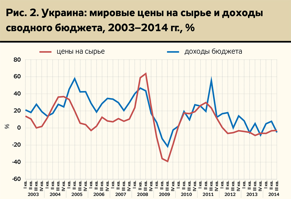 По сути, это краткий курс новейших украинских финансов: бурный рост на восходящей волне сырьевой конъюнктуры в 2000–2008 гг. и последующее кризисное пике с кратковременной приостановкой в 2010–2011 гг. (благодаря оживлению мировых рынков сырья).