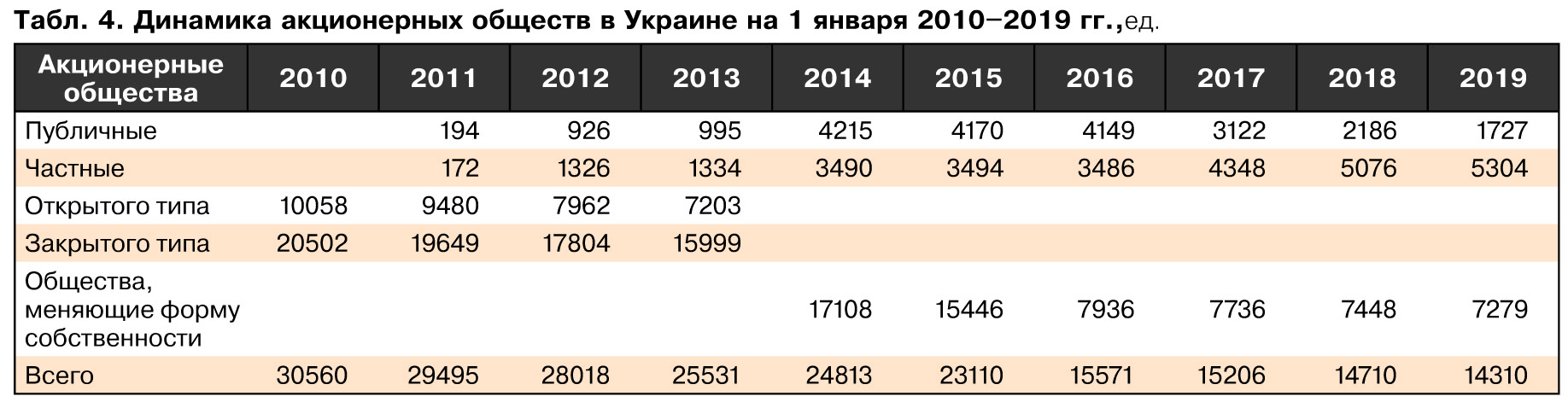 Кроме того, за последние десять лет в Украине проводятся активные эксперименты с правовым оформлением собственности крупными предприятиями. По моему мнению, постоянные законодательные изменения и регулирование без стратегического видения в сфере отечественного корпоративного сектора также повлияли на уменьшение и исчезновение многих крупных акционерных обществ.