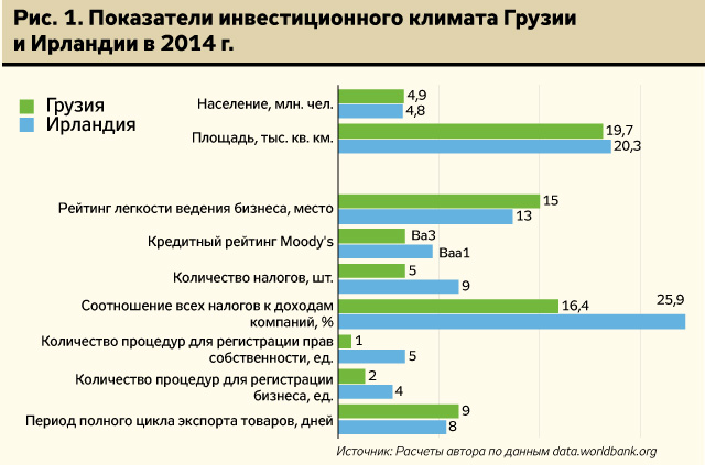 Первыми согласились помочь Украине грузинские реформаторы. Им действительно можно отдать должное - за довольно короткий промежуток времени по многим важным показателям Грузии удалось подняться и обойти даже некоторые развитые страны. Идеально Грузию сравнить Ирландией, которая в конце 1990-х тоже удивила весь мир стремительным ростом своей экономики. Эти страны равны по населению и территории, но по ряду индикаторов инвестиционного климата Грузия уже существенно опережает Ирландию.