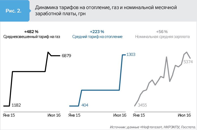 В-третьих, эксперты поддерживают МВФ в том, что рассрочки платежей для населения за потребленное тепло необходимо отменить. Мысль, на первый взгляд, крамольная. В стране с крайне низким уровнем дохода любая возможность снизить расходы семей на оплату ЖКУ должна, наоборот, приветствоваться (см. рис. 2). Но эксперты справедливо отмечают, что данная норма фактически лишает рынок конкуренции, а пока он не станет конкурентным, положение конечных потребителей тоже едва ли улучшится. На данный момент ни один другой трейдер, кроме "Нафтогаза", не сможет предложить отсрочку платежей на шесть месяцев. Получается, что для потребителей создали кабальные условия: повысили тарифы, которые невозможно оплатить, а потом дали возможность рассрочки, заблокировавшей доступ на рынок других поставщиков, которые могли бы предложить более лояльную тарификацию,