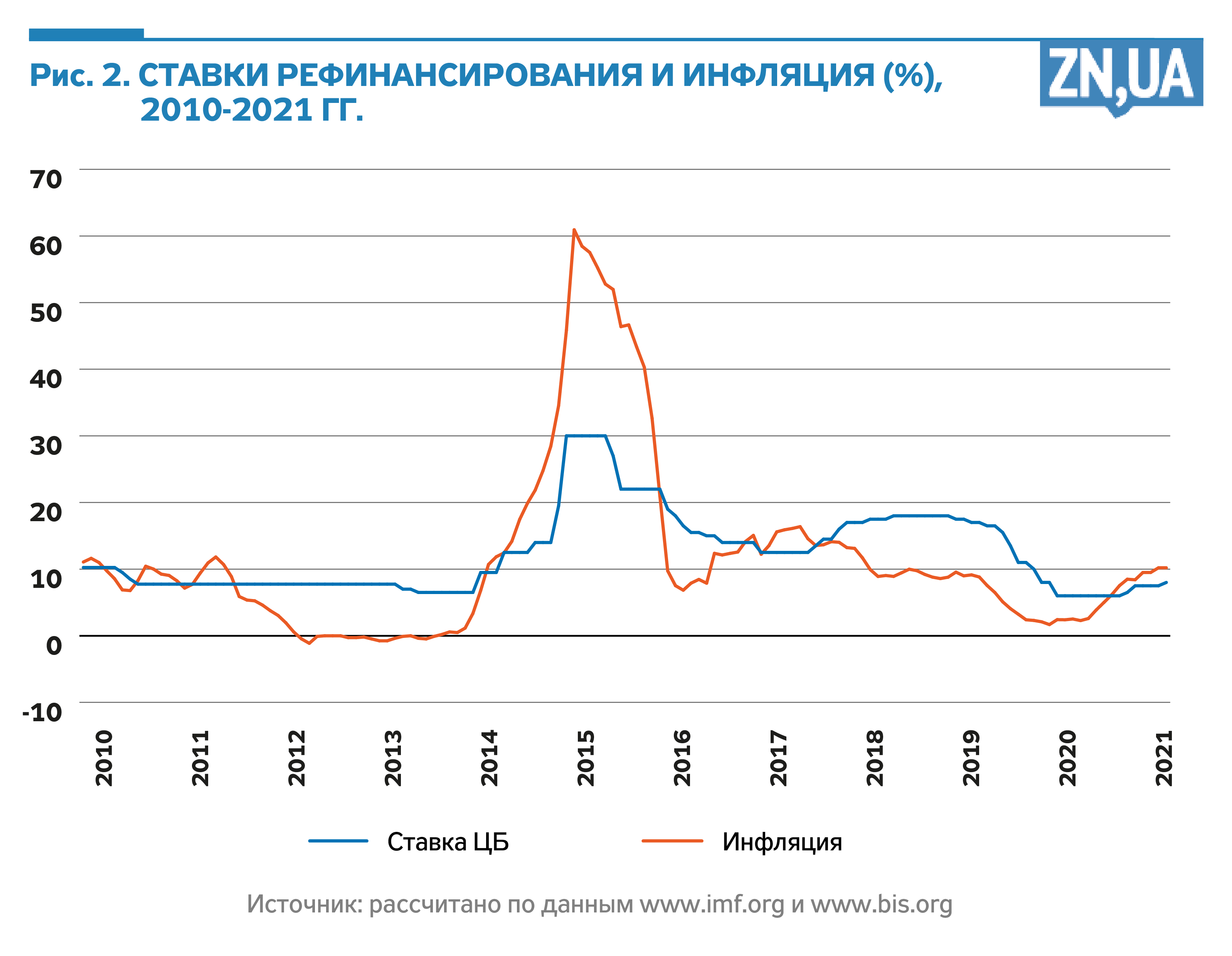 Если кого-то не убеждает собственный опыт, то можно присмотреться к развитию событий в близкой нам Турции. До осени 2016 года учетная ставка составляла 7,5%, а инфляция — около 7–8%. В начале 2017-го инфляция превысила 12%, но учетная ставка была повышена всего до 8%. Так продолжалось до июня 2018 года, когда инфляция достигла 15%, а ответом стало повышение учетной ставки до 17,75%. Торможению «взбесившихся» цен это не помогло, поэтому в сентябре 2018-го учетную ставку пришлось повысить до 24%. Инфляция начала снижаться только весной 2019 года, а следствием стало повышение ставки в реальном измерении до 8%. Почти как в Украине, сразу же появились критики «невероятной дороговизны» кредитных ресурсов, и началось ускоренное снижение учетной ставки, которое «пилотировал» лично президент страны Реджеп Эрдоган. Начало пандемии COVID-19 только усилило этот процесс. Учетная ставка уменьшилась до 8,25% и в который раз стала ниже нейтрального уровня. Впрочем, до конца 2020 года учетная ставка вновь стала положительной в реальном измерении, но это не затормозило инфляцию. На сегодняшний день учетная ставка выросла до 19%, но инфляция не снижается. Повторяется ситуация из 2018–2019 годов, когда для торможения инфляции учетная ставка в реальном измерении постепенно выросла до 7%. Очевидно, что в ближайшее время увидим именно это.