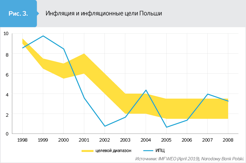 И, как видим, и в других странах, находившихся на начальном этапе инфляционного таргетирования, несмотря на отклонение фактического роста цен от целевых параметров, общий тренд был на ее снижение (см. рис.). Это помогало стабилизировать экономику и, при условии проведения структурных реформ, обеспечить устойчивый экономический рост.