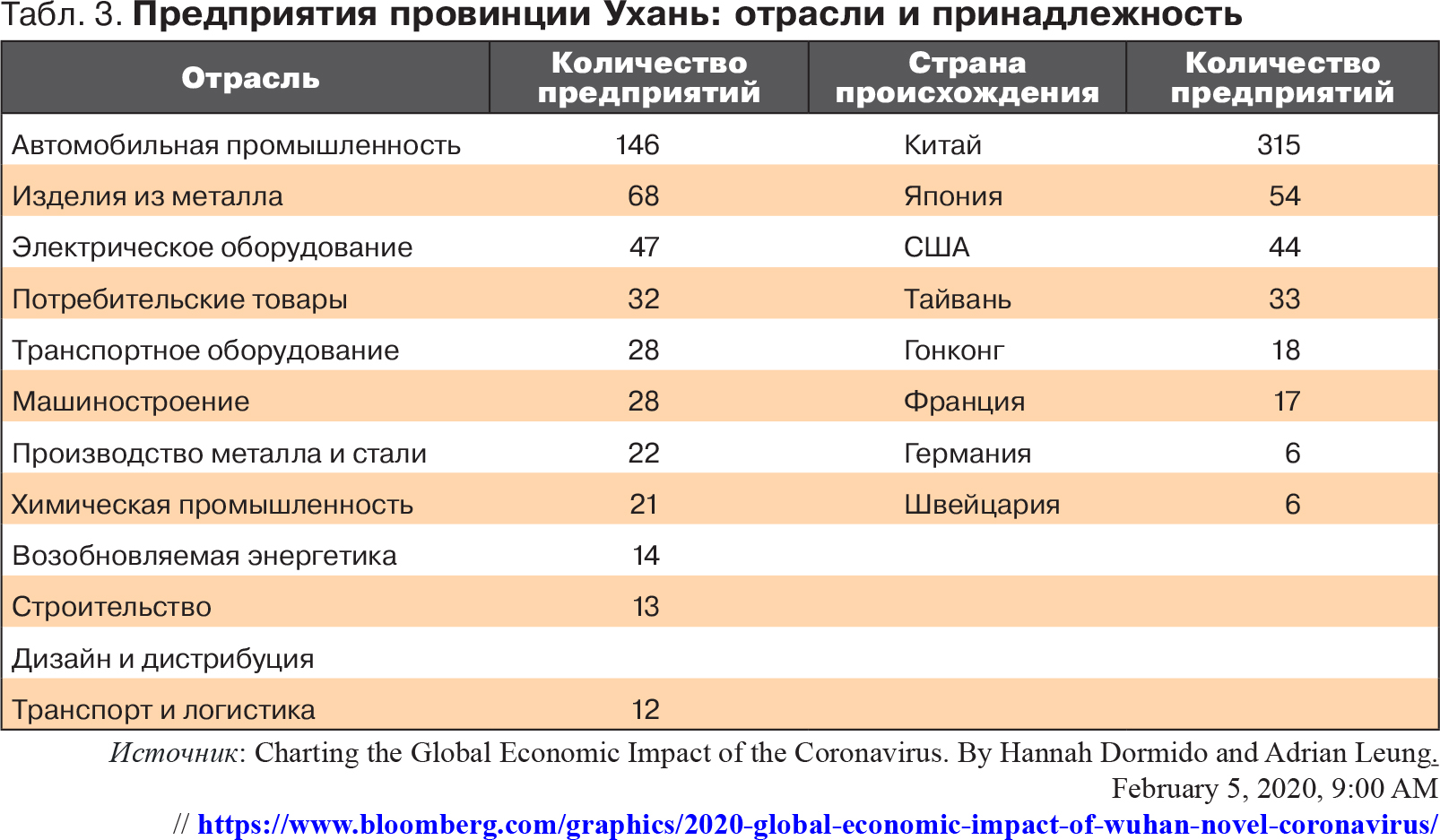 Эпидемия коронавируса вспыхнула в провинции Ухань, структура экономики которой приведена в таблице 3.