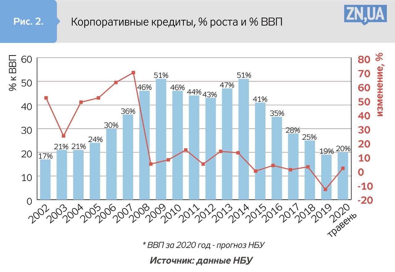 При этом между кризами 2008–2009 и 2014–2015 годов экономика Украины почти не росла, а объемы кредитования увеличивались в среднем темпами около 10%. Такая разница вряд ли объясняется в категориях спроса на кредит. Кредитование инсайдеров превратилось в системную проблему. С одной стороны, оно стало символом хищнической экспансии политических бизнес-групп. С другой — едва ли не единственной возможностью обеспечить финансирование такой экспансии в условиях фрустрации верховенства права и тотального рейдерства. После идентификации владельцев банков и их конечных бенефициаров картина стала иной. Жесткие ограничения на инсайдерское кредитование и введенные требования к банкам по уменьшению объемов связанных кредитов привели к постепенному снижению этого показателя. Но совсем не случайно общее наращивание объемов корпоративного кредитования замедлилось. Емкость кредитного рынка в условиях ограничений оказалась значительно меньшей, чем тогда, когда кредитование опиралось на манипулятивные/мошеннические или политически мотивированные практики.