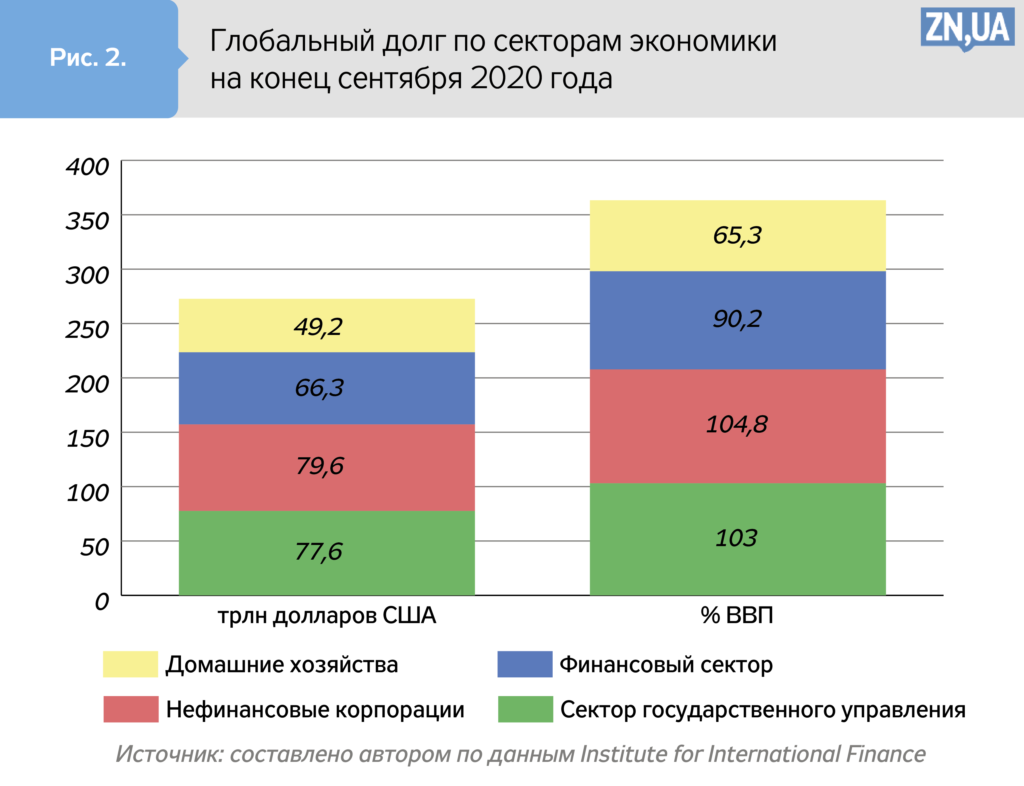 В контексте проблем глобального долга наиболее рискованны сейчас долги нефинансовых корпораций и органов государственного управления. Высокий динамизм роста этих долгов подвергает заемщиков рискам рефинансирования долга, повышает их зависимость от колебаний процентных ставок и обменных курсов. По оценкам МВФ, крупные корпорации, у которых есть постоянный доступ к финансированию, с высокой вероятностью сохранят свою платежеспособность и избегут дефолтов. Но большинство небольших фирм, работающих в секторах, пострадавших от пандемии, столкнутся с проблемами узкого рынка и недостаточной ликвидности, что повысит риски распространения дефолтов.