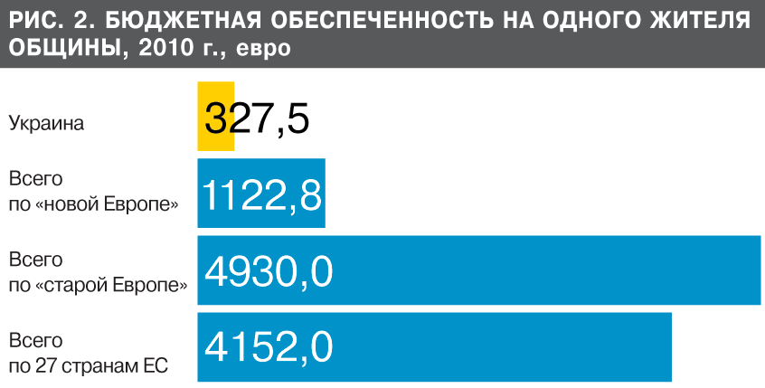 Есть над чем задуматься, если у нас в будущее общины вкладывается около 240 грн на одного жителя, а в странах "новой Европы" - почти 2,5 тыс. грн и "старой Европы" - около 5 тыс. грн (см. рис. 6).