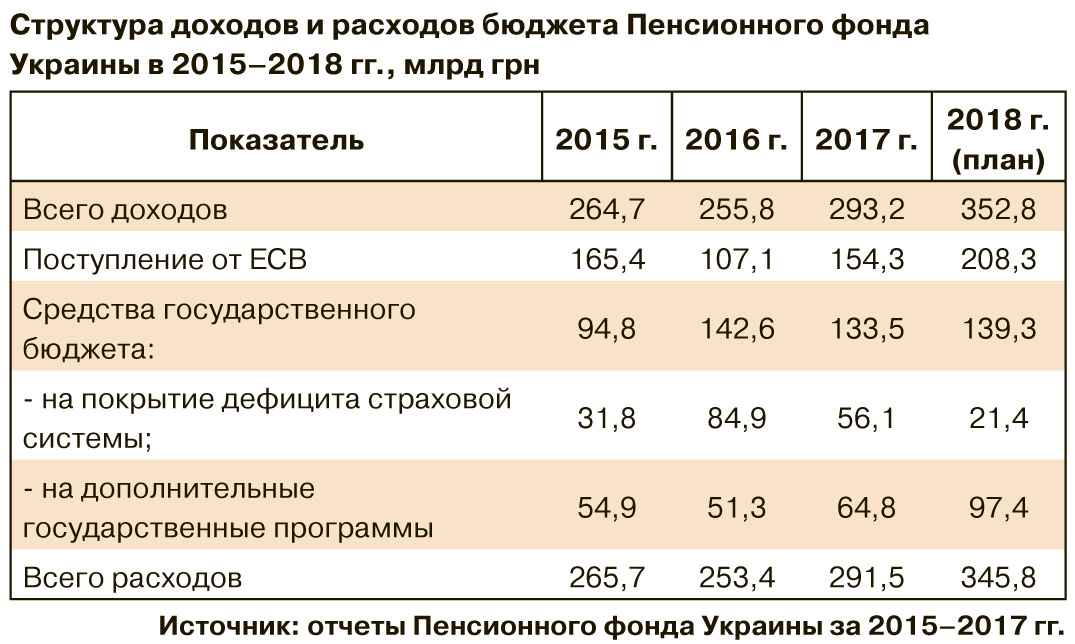 В 2016 г. суммарный размер единого социального взноса (ЕСВ) был сокращен до 22%, а его пенсионная составляющая уменьшилась почти вдвое. Работодатели с радостью воспользовались возможностью тратить на оплату труда еще меньше, поэтому взрывного роста "бруттизированных" зарплат ожидаемо не было. По сравнению с 2015 г. поступления страховых взносов в бюджет Пенсионного фонда сократились на 35% (см. табл.), хотя средняя зарплата выросла на 23,6%, а численность застрахованных наемных работников, являющихся самыми надежными плательщиками взносов, - на 4,2%. По расчетам Пенсионного фонда, потери собственных поступлений вследствие снижения ЕСВ оценивались в 96,4 млрд грн. При неизмененном размере ЕСВ можно было собрать почти вдвое больше взносов и закончить бюджетный год даже с профицитом в 14,7 млрд грн. А в результате в 2016 г. более половины расходов пенсионной системы пришлось обеспечивать с помощью государственного бюджета.