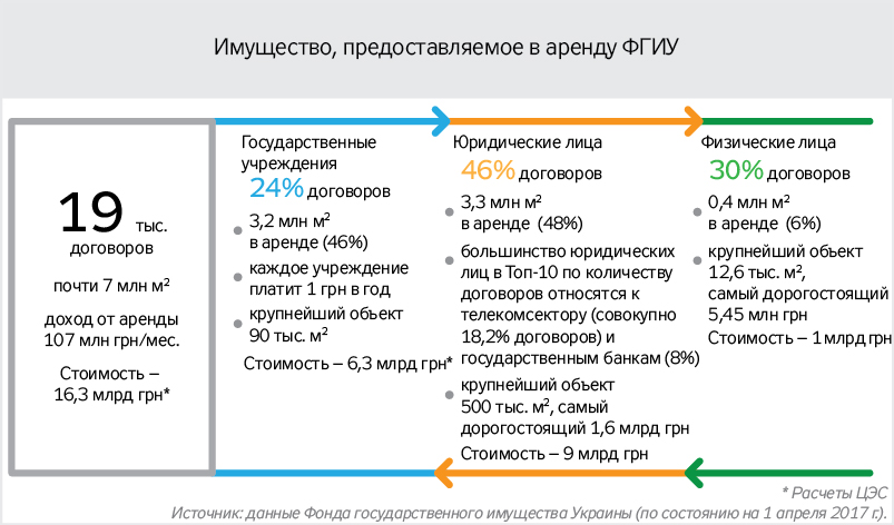 Значительная часть этих объектов - из тех, что не разрушились и не сгнили, - сдается Фондом в аренду. И, по идее, должна приносить неплохой доход госбюджету, но сумма едва доходит до миллиарда гривен за год. При этом речь идет 7 млн квадратных метров недвижимости оценочной стоимостью свыше 16 млрд грн. Большая часть которых создает огромные коррупционные риски.
