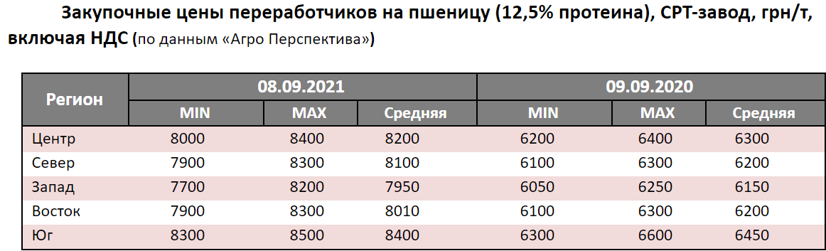 В переводе на понятный язык сие изобилие цифр означает, что и наши мукомолы должны быть готовы платить высокую цену за сырье. На начало сентября 2021 года речь идет о 7700–8500 грн/т. И это при том, что в это же время в прошлом году цена составляла 6050–6600 грн/т.