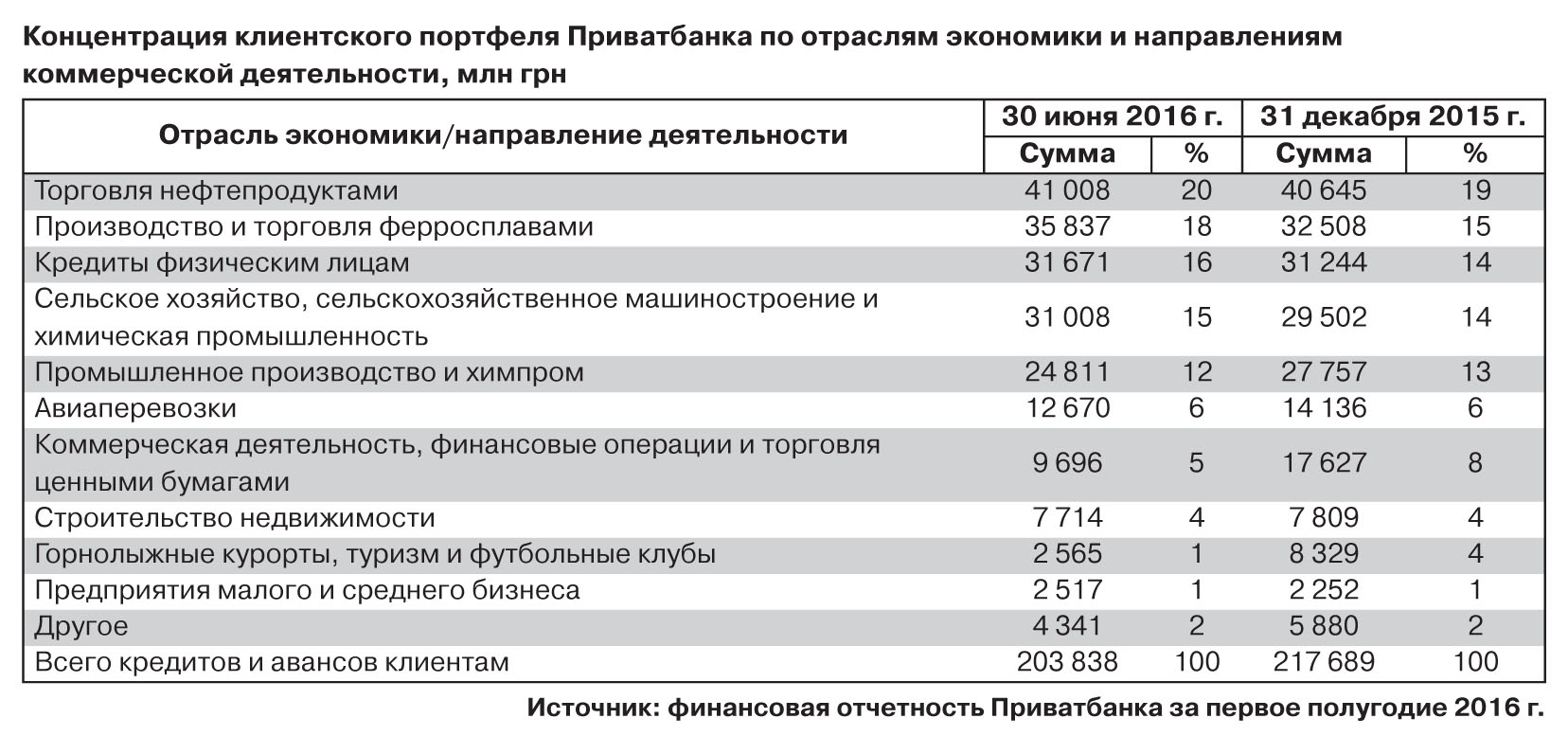 В конце ноября Fitch Ratings подтвердило долгосрочный кредитный рейтинг Приватбанка в иностранной валюте на уровне "ССС", который характеризуется "очень высокими кредитными рисками". В сопутствующем обзоре отмечается, что на конец первой половины 2016-го кредитование связанных сторон (согласно МСФО) находилось на высоком уровне в 19% кредитов (или 109% основного капитала по методологии Fitch). Но эта оценка сопровождается оговоркой, что эти цифры могут не полностью отражать все риски по аффилированным структурам "с учетом ограничений в раскрытии бенефициарных прав собственности в Украине". Невозможностью (или нежеланием) доказать наличие "родственных связей" в хитросплетении неформально приватовской ФПГ, видимо, и объясняются столь большие разночтения в оценках объемов инсайдерского кредитования в банке. От официально публикуемых 20–25% до популярной на рынке оценки, что на связанные структуры приходится 80% приватовского кредитного портфеля, еще 15–16% - на розницу и только 4–5% розданы "в рынок".