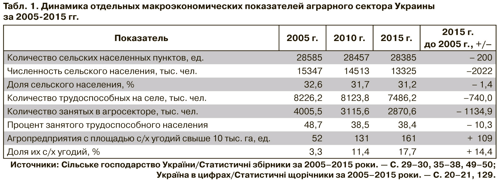Несмотря на интенсивный рост в течение этого десятилетия числа сверхкрупных сельхозпредприятий, существенное сокращение в селе количества населенных пунктов, как и сельского населения (см. табл. 1) на совести не только олигархата. Деструктивную роль здесь сыграл и ряд других факторов. Но игнорировать скорее негативное, чем положительное влияние крупных агропредприятий на динамику приведенных показателей оснований нет, поскольку почему-то указанные изменения происходили в унисон с их ростом и увеличением площади сельскохозяйственных угодий. И если раньше снижение численности сельского населения можно было объяснять его внутренней миграцией на "строительство коммунизма", то сейчас это не подходит по банальной причине: в целом численность населения в Украине тоже уменьшается.