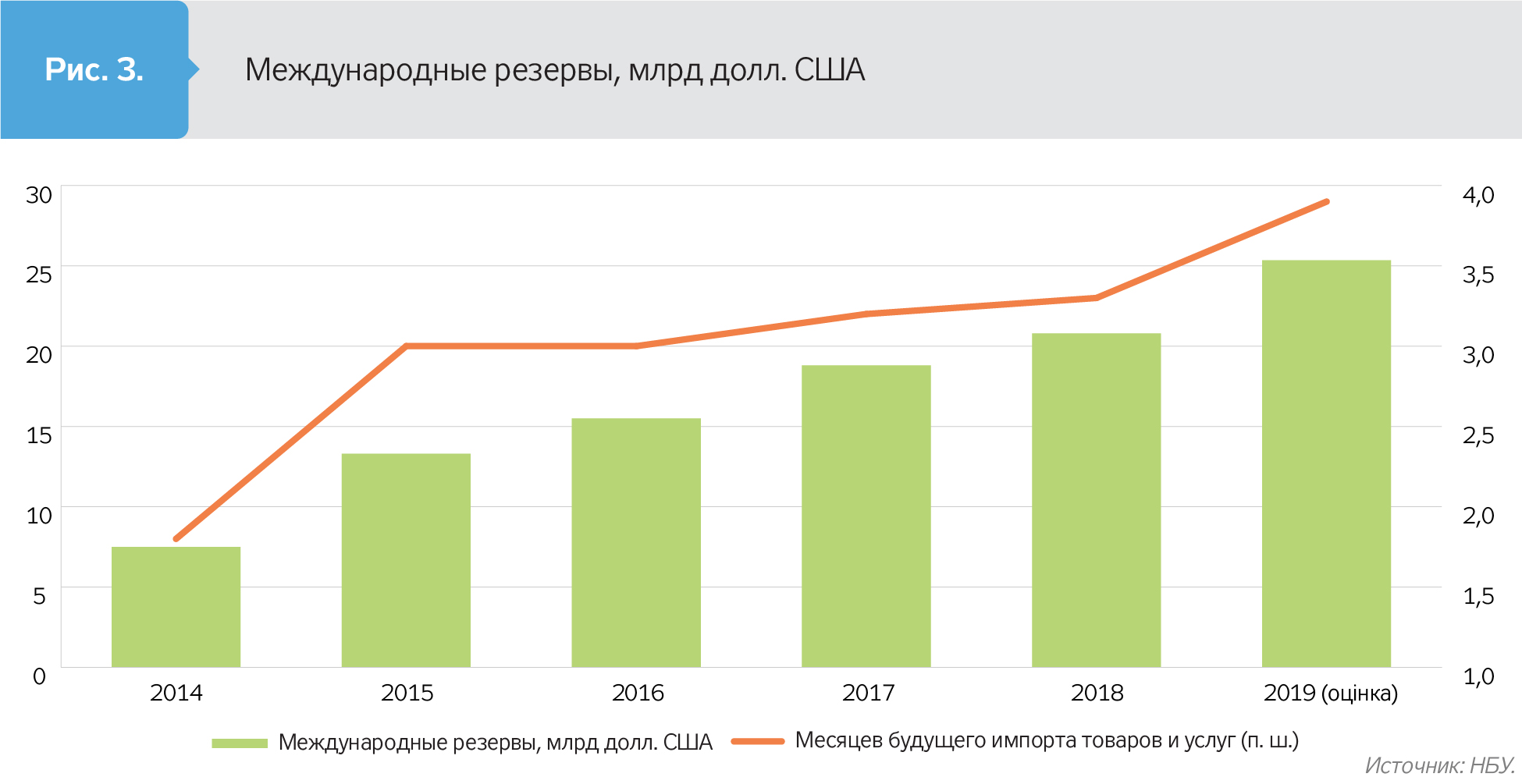 Основной проблемой экономики являются значительные выплаты основного долга государства и затраты на его обслуживание. С целью финансирования дефицита бюджета и долговых выплат правительство выходило со значительными размещениями ОВГЗ (за 11 месяцев 2019 года Минфин разместил на первичном рынке ОВГЗ на 213 млрд грн, 4,1 млрд долл. США и 0,2 млрд евро). Это обусловило приток капитала нерезидентов, что при режиме плавающего курса привело к укреплению гривни и соответствующему ухудшению ценовой конкурентоспособности экономики. Однако благодаря этому в структуре госдолга уменьшается доля в иностранной валюте, а срочность долга растет. Это снижает валютный риск и делает долг более устойчивым. Соотношение долга к ВВП также существенно упало и сейчас составляет менее 50% ВВП по сравнению с 81% ВВП в 2016 году. Тем не менее бюджет значительно потерял от укрепления гривни. Эти чистые потери государственного бюджета (за вычитанием экономии на долговых выплатах) от разницы между фактическим курсом гривни и курсом, заложенным в бюджет, по оценкам НБУ, составят в этом году около 20 млрд грн. Но это всего 2% общих доходов государственного бюджета. Тогда как ускорение реформ в налоговой службе и таможенных органах должно было бы принести намного больше доходов в бюджет.