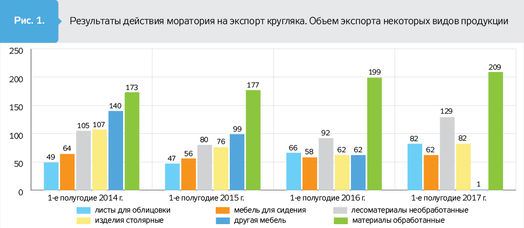 Но когда Украина пытается реализовать защитные механизмы относительно собственных отраслей экономики, то это воспринимается официальными органами ЕС как нарушение требований о недопустимости торговых барьеров. Показателен пример, связанный с введением Украиной с 1 ноября 2015 г. моратория на экспорт древесины в необработанном состоянии (в частности, леса-кругляка). На рис.1 представлена информация о его позитивном воздействии.